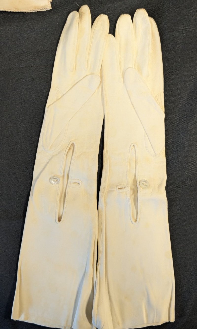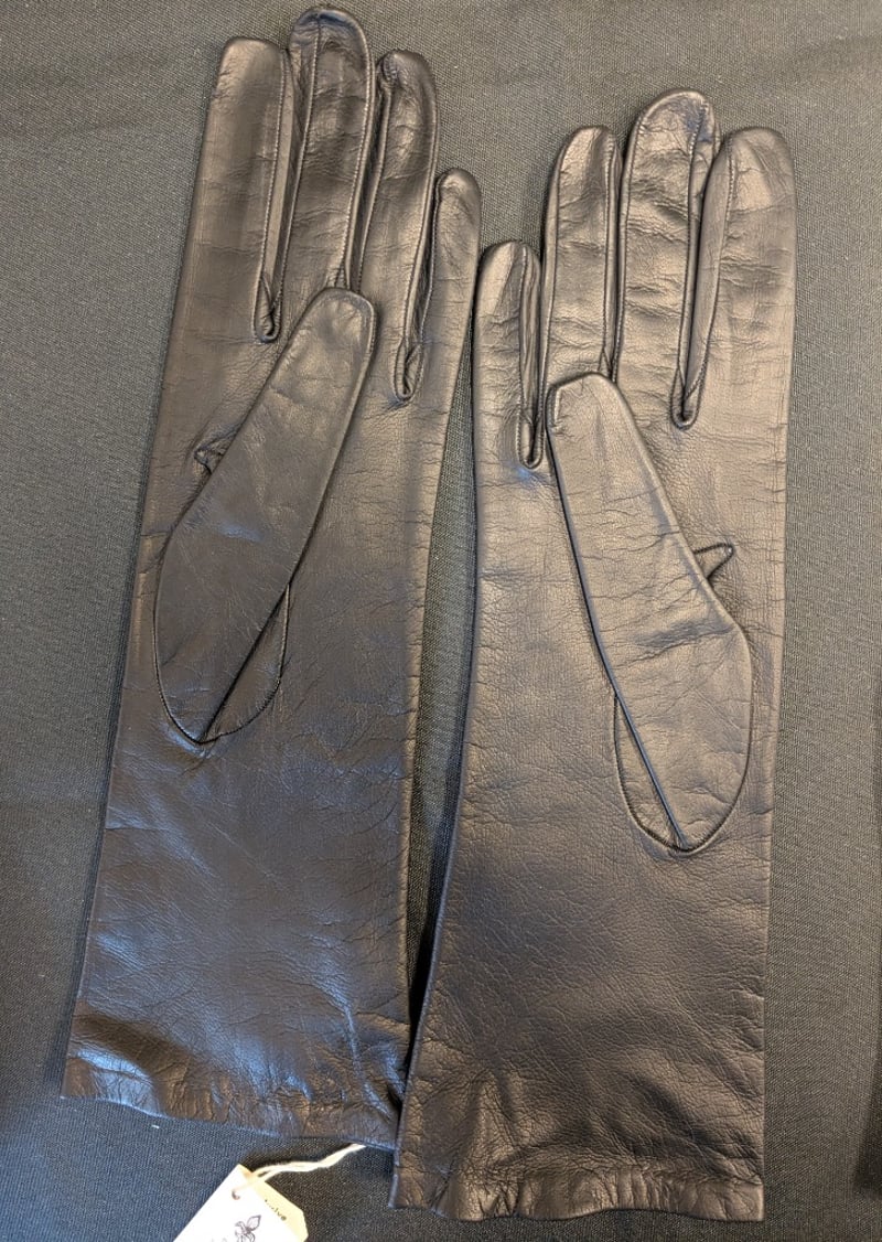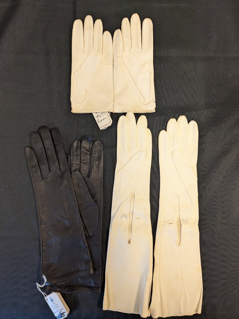 Curated Collection Of Leather Gloves Featuring Cream Kid Leather Short Gloves, Elongated Opera-Length Gloves, And Black Leather Gloves. Includes Sfas Dovalure Brand Gloves Made Exclusively For Saks Fifth Avenue, With Hand-Stitched Details And Button Closures. Mix Of Short And Long Styles In Pristine To Excellent Condition.