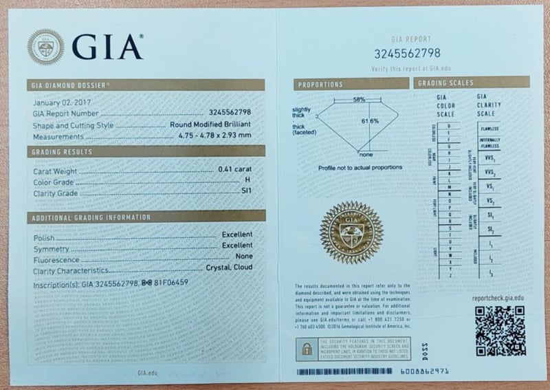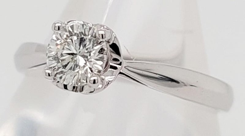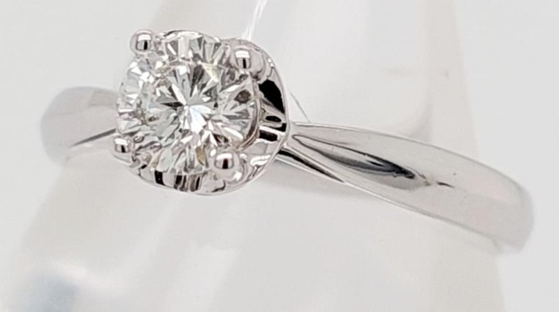 18CT WHITE GOLD DIAMOND SOLITAIRE RING This White Gold Ring Features 1 X 0.41Ct Round Brilliant Cut Diamond Measuring 4.75Mm X 4.78Mm X 2.93Mm, H In Colour And Si1 In Clarity As Per Gia Report Number 3245562798. Markings: G750 Condition: Excellent- Refer Images 0 162901+69 CROSSDOCK