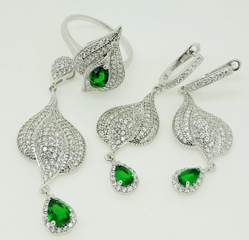 SILVER CUBIC ZIRCONIA JEWELLERY SETIncludes - 1X Pair Of Earrings 1X Pendant1X RingCondition: Good - Refer To Images488252+56