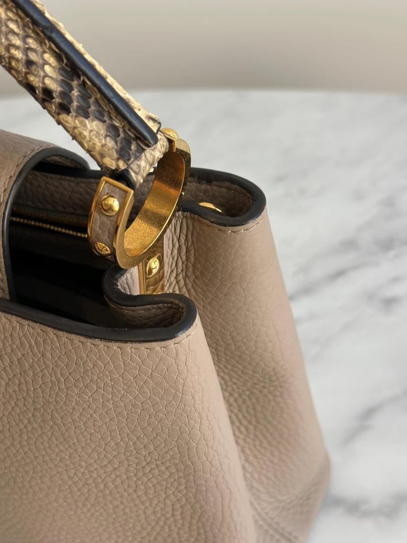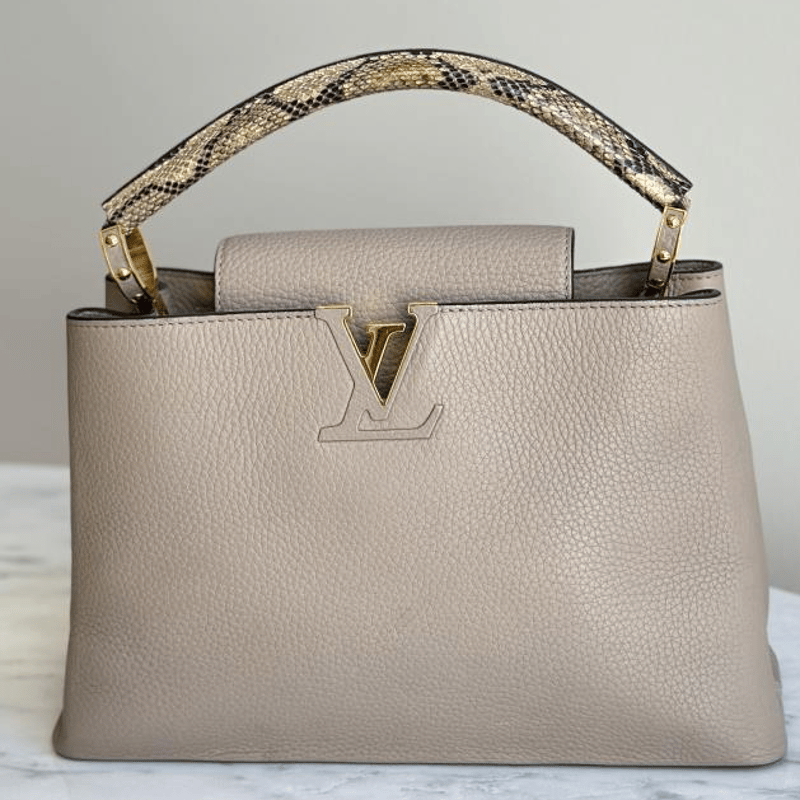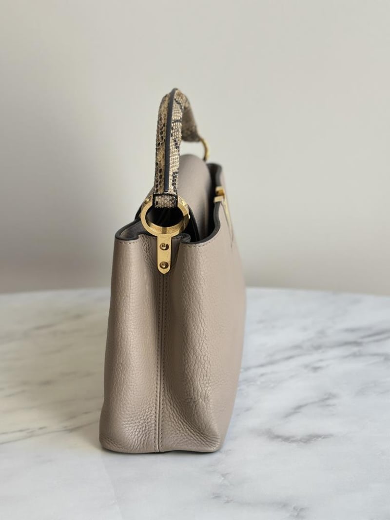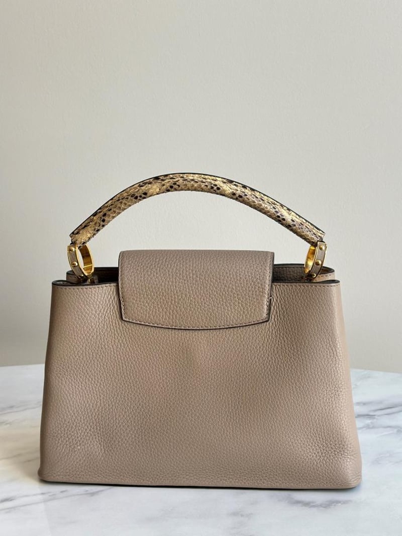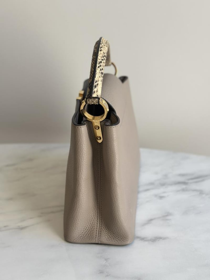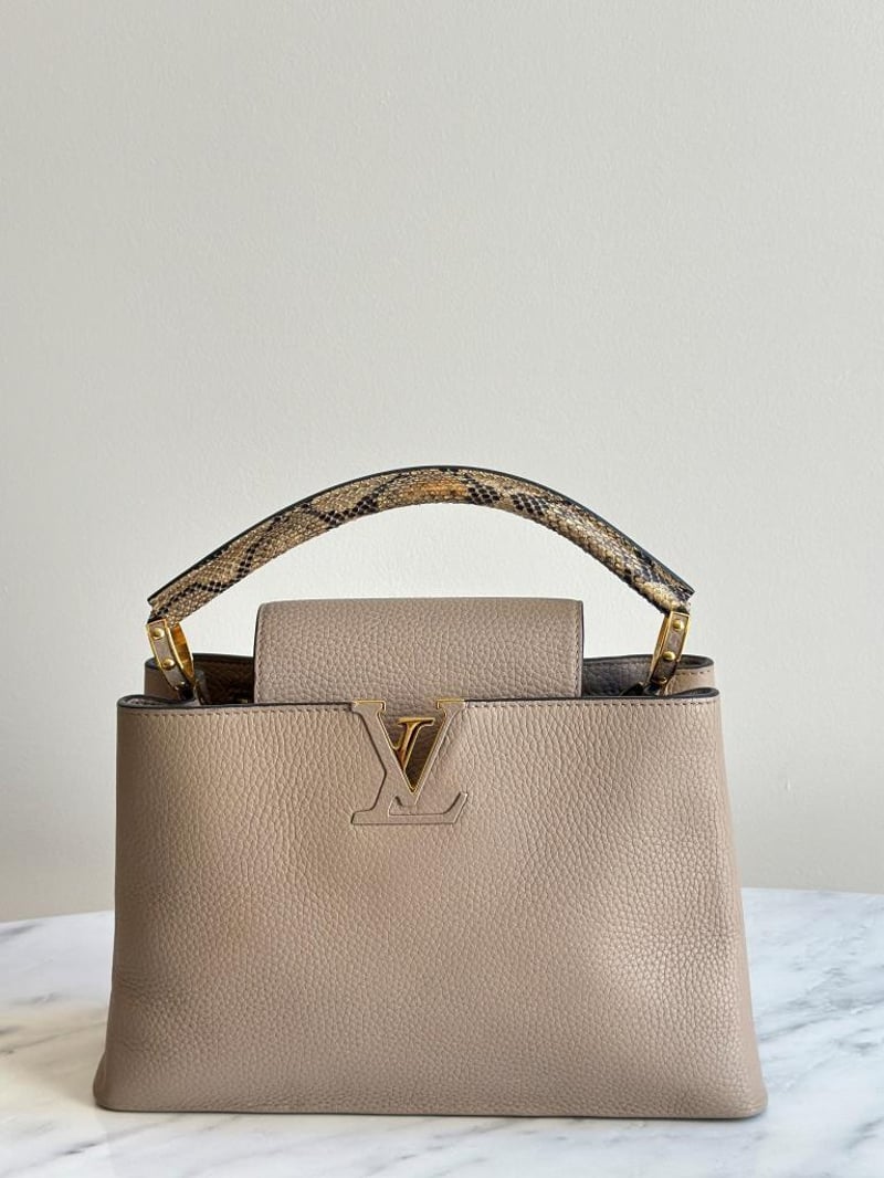 LOUIS VUITTON BEIGE CAPUCINES PYTHON PM BAGSize: 31W x 21H x 11D cmCondition: moderate hairlines on hardware, creases on leather under the flap, nail scratches inside+6