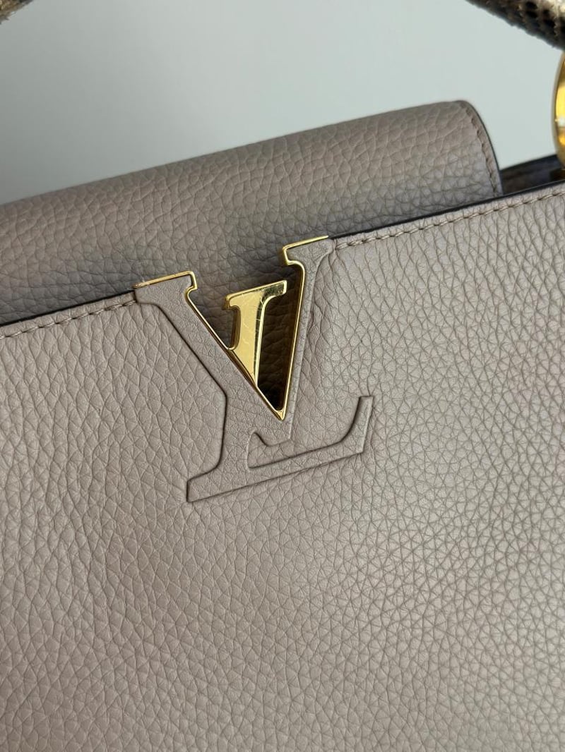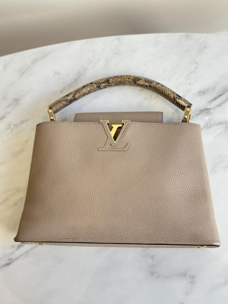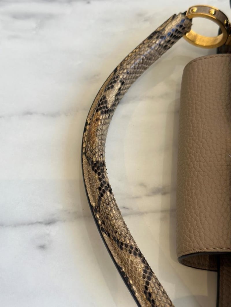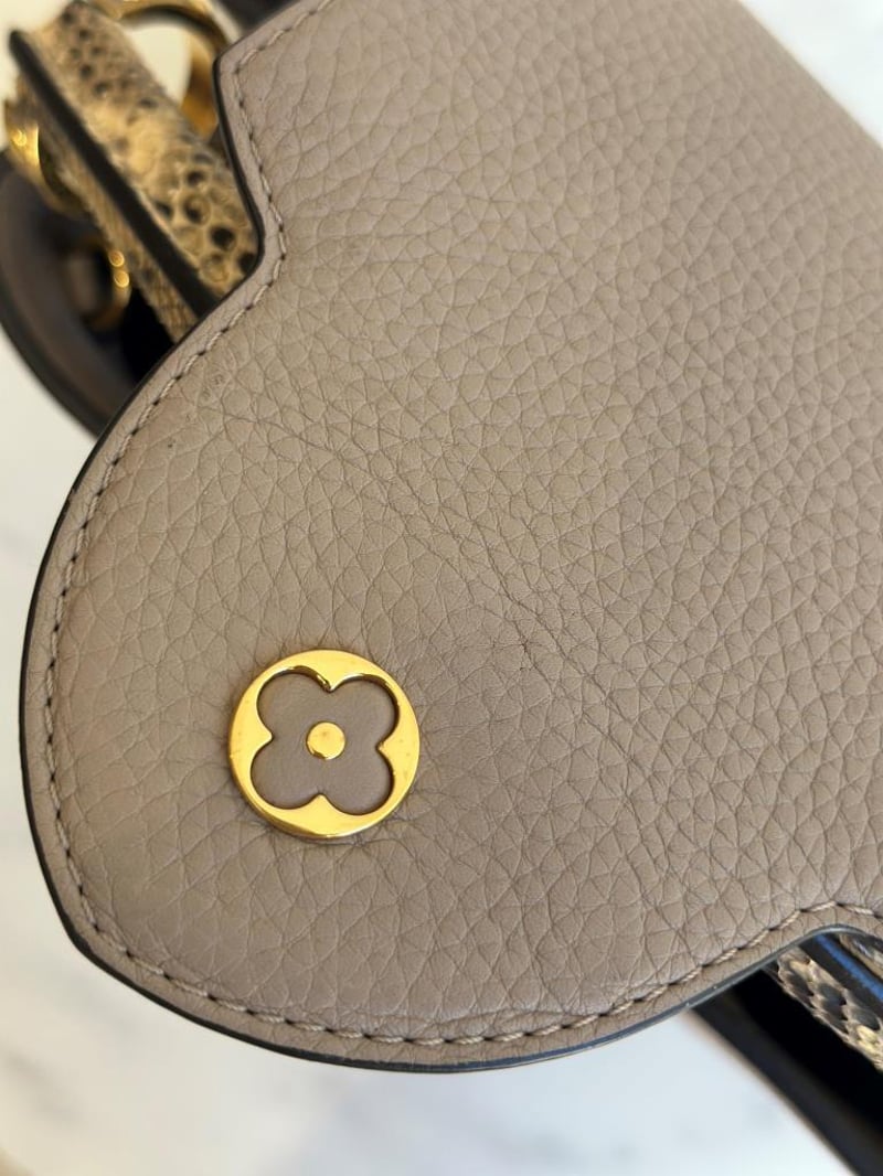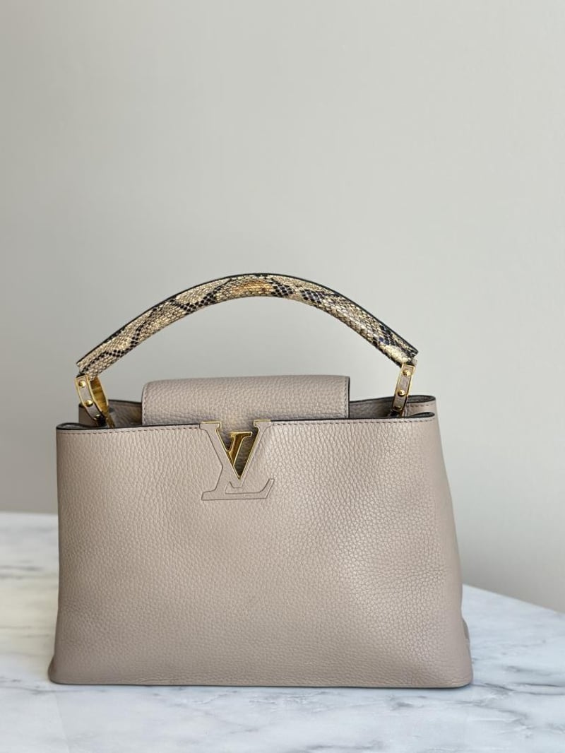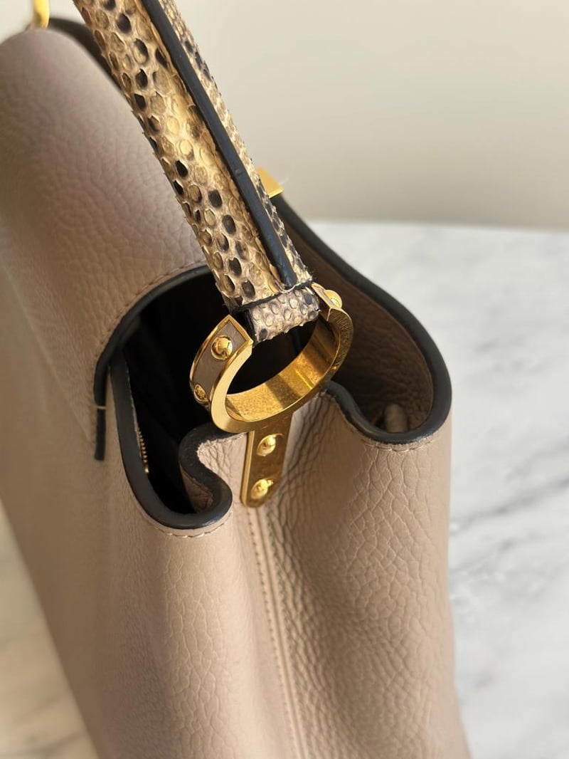 LOUIS VUITTON BEIGE CAPUCINES PYTHON PM BAGSize: 31W x 21H x 11D cmCondition: moderate hairlines on hardware, creases on leather under the flap, nail scratches inside+6