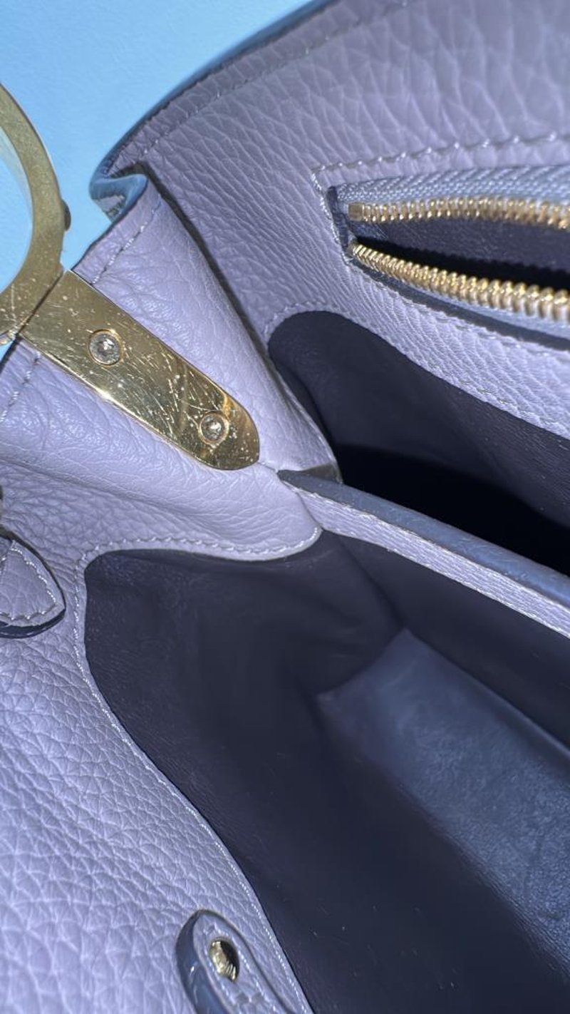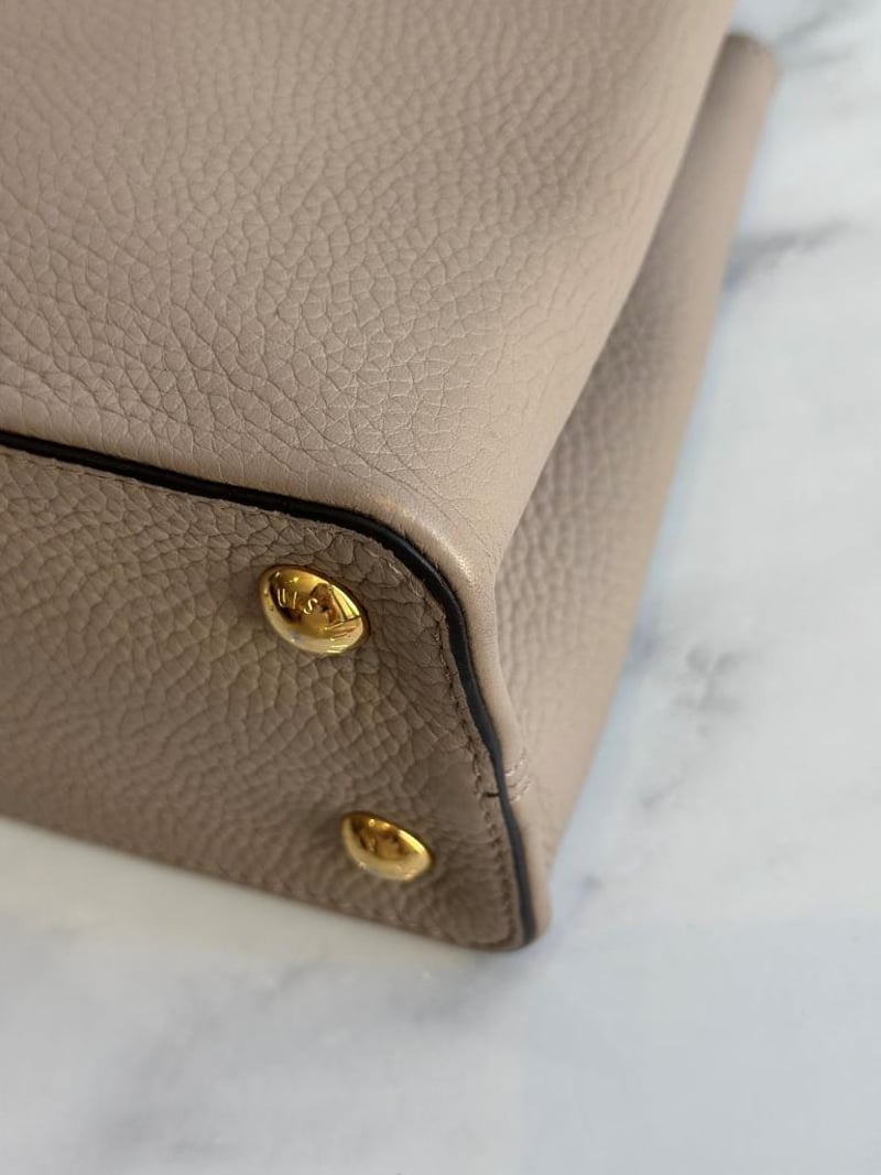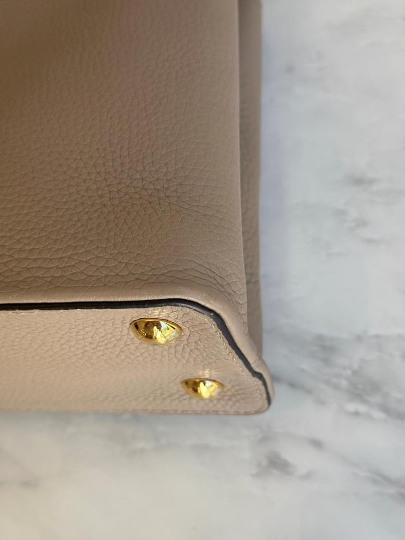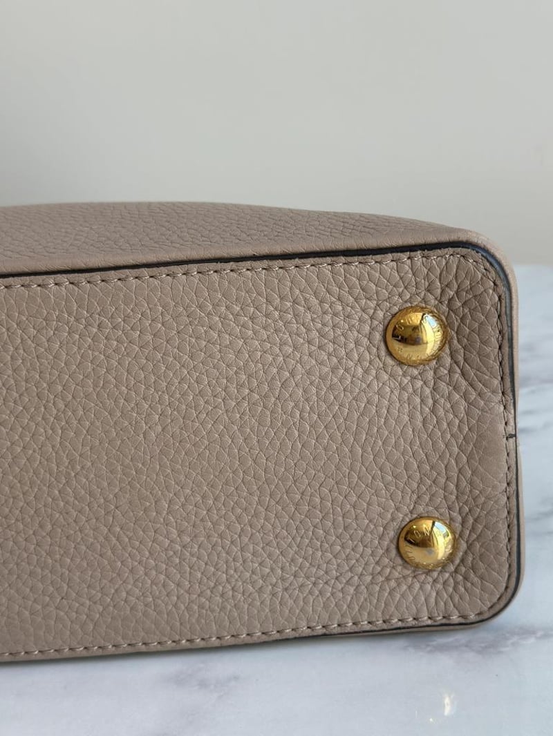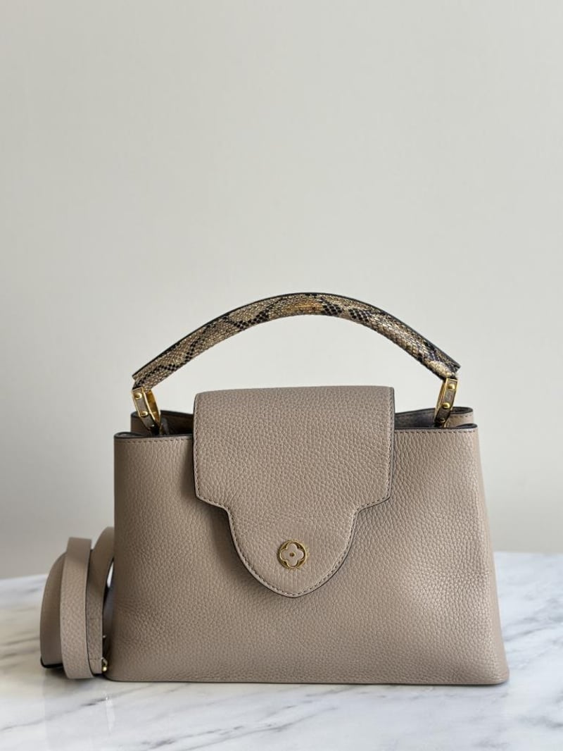 LOUIS VUITTON BEIGE CAPUCINES PYTHON PM BAGSize: 31W x 21H x 11D cmCondition: moderate hairlines on hardware, creases on leather under the flap, nail scratches inside+6