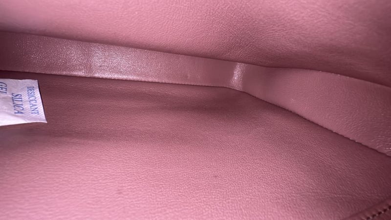 Condition: In good used condition with scratches on hardware, stickers still intact on some of the hardware, corner rubs and rubs on the pipping, scuffs and nail scratches on inside and outside