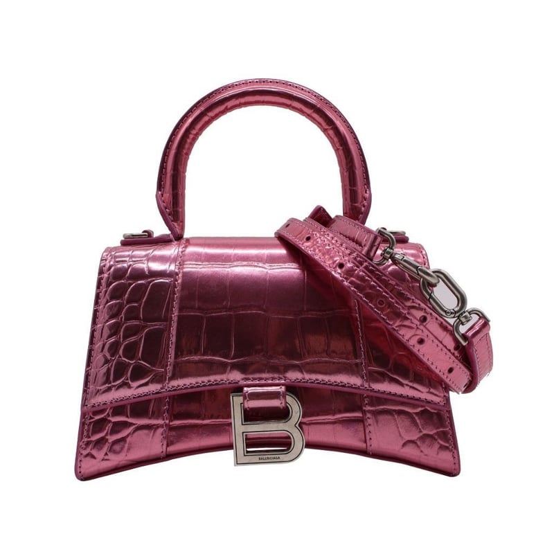 BALENCIAGA HOURGLASS SHINY PINK CROCODILE-EMBOSSED XS TOP HANDLE BAGExterior MaterialLeather With Silver-Tone Hardware, Single Top Handle, Magnetic Closure, A Rear Patch Pocket And A Shoulder Strap.Interior MaterialLeather Lining With A Main Compartment.Additional Condition Report- Minor Sign Of Wear And Tears On Exterior- Minor Wear And Scuffs In Interior- Sign Of Wear And Scratches On HardwareComes With- A Detachable Strap- Certificate Of AuthenticitySize: Length: 19cmHeight: 13cmDepth: 7.5cmStrap Drop: 47cm Detachable AdjustableCondition: Good - Refer Images163141+43