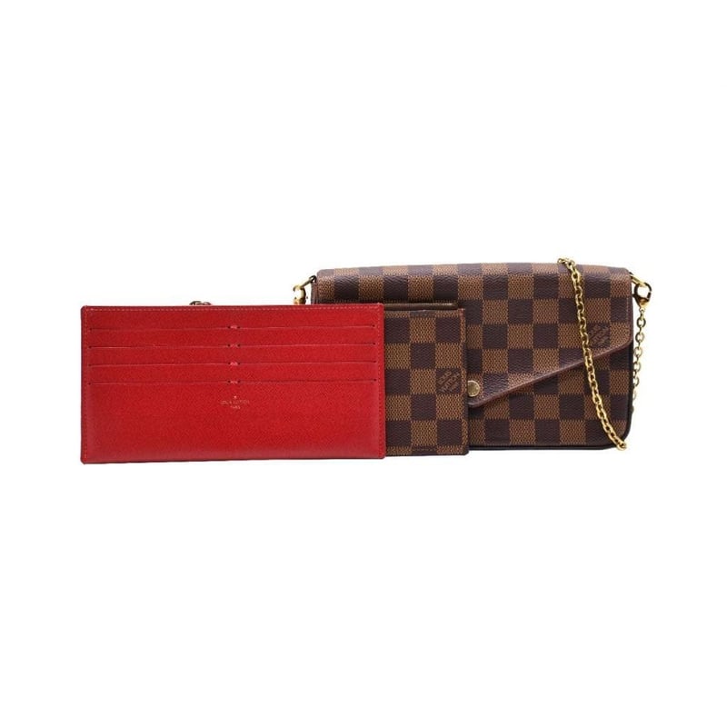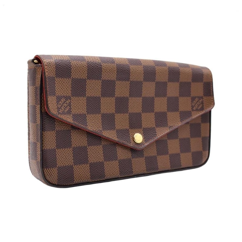 LOUIS VUITTON POCHETTE FÉLICIE IN DAMIER EBENE CANVASExterior MaterialDamier Ebene Canvas And Leather Trim With Gold-Tone Hardware, Snap Button Flap Closure And A Chain-Link Shoulder Strap.Interior MaterialTextile Lining With A Main Compartment And Single Slip Pocket.Additional Condition Report- Minor Sign Of Wear And Tears On Exterior- Moderate Scuffs And Creases Along The Edges- Minor Wear In Interior- Sign Of Wear And Scratches On HardwareComes With- Original Box- Original Dustbag- A Detachable Zip Pouch- A Detachable Card Pouch- A Detachable Strap- Certificate Of AuthenticitySize: Length: 21cmHeight: 12cmDepth: 3cmStrap Drop: 55cm DetachableCondition: Good - Refer Images163141+46