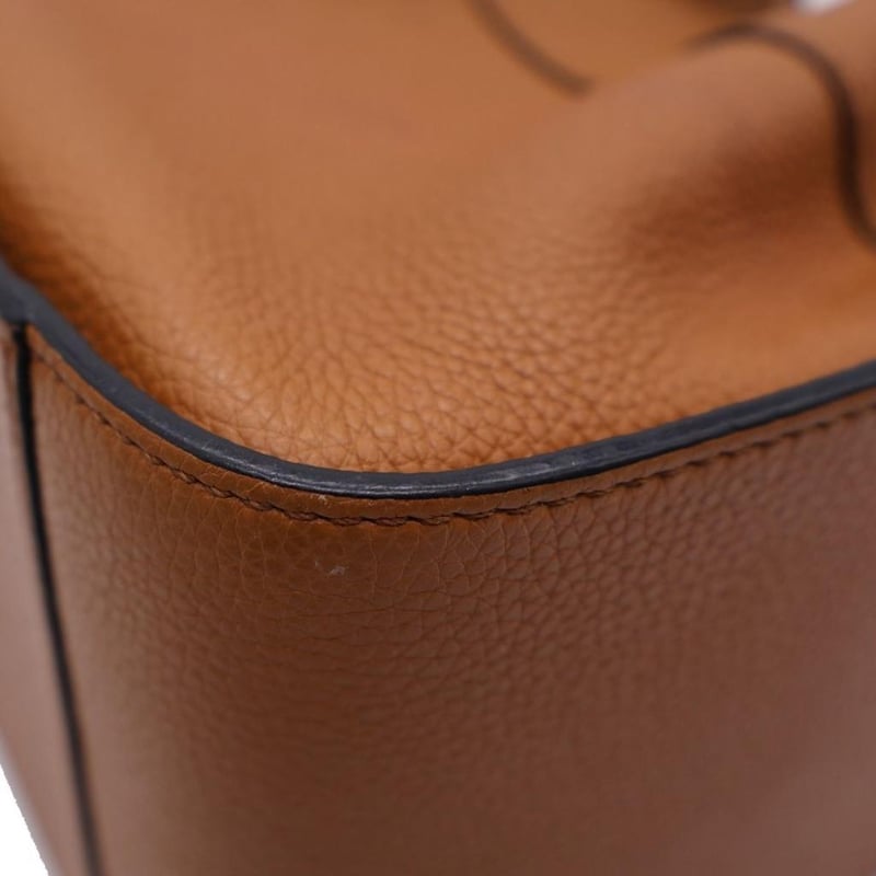 Leather With Gold-Tone Hardware, Dual Flat Top Handles, Drawstring Closure And A Shoulder Strap.