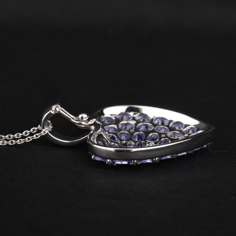 Exquisite Tanzanite Pendant: A Symphony of Color and Elegance Indulge in the enchanting allure of this exquisite Tanzanite pendant, a true masterpiece that captures the essence of luxury and sophistication. This stunning piece features an impressive collection of 34 oval-cut AA-grade Tanzanite gemstones, each measuring 4x3mm, radiating a captivating violet-blue hue reminiscent of twilight skies. Complementing this opulent display are four 2.30mm round Tanzanite stones, four 1.80mm round gems, and eight 1.50mm round beauties, all expertly set to create a harmonious cascade of color and brilliance. Crafted with meticulous attention to detail, the pendant is not just a statement of elegance but also a testament to fine craftsmanship. The lightweight yet durable metal, with a weight of 1.50 grams, is designed to ensure comfort while accentuating the exquisite Tanzanite stones. The pendant features a secure spring lock and a 5.50mm cable SP chain, assuring peace of mind while you adorn yourself with this striking piece. Whether worn for a special occasion or as an everyday accessory, this Tanzanite pendant is a celebration of nature's beauty and an invitation to embrace the extraordinary. Elevate your jewelry collection with this stunning piece that promises to be a cherished addition for years to come. Bid now and make this luxurious expression of elegance yours.