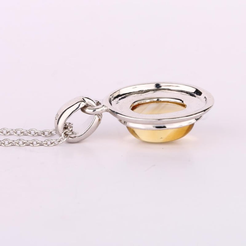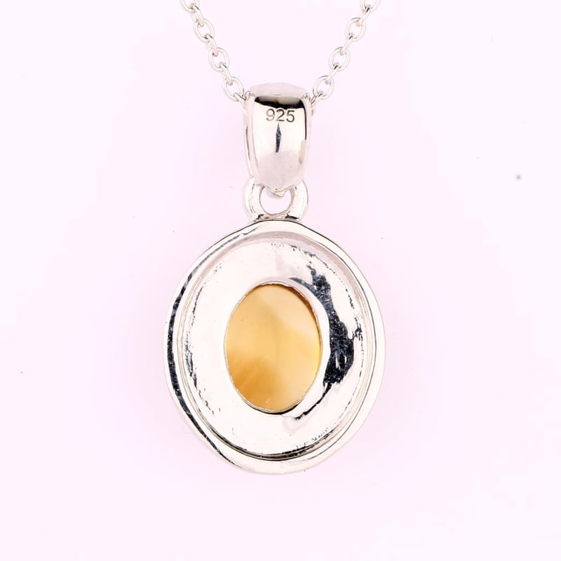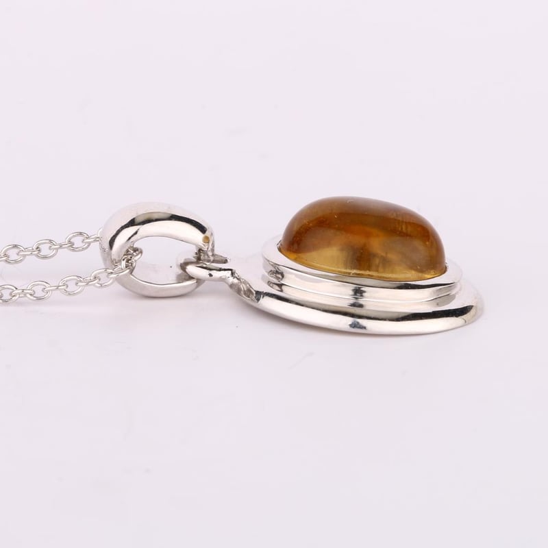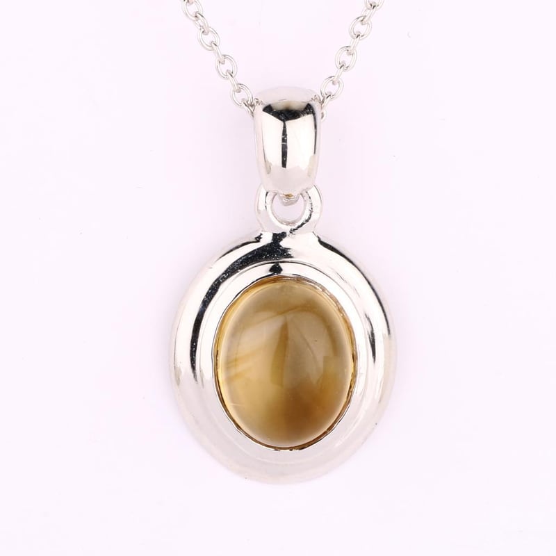 Radiant Citrine CAB Oval Pendant - A Touch of Sunshine Indulge in the warm embrace of this exquisite Citrine CAB Oval Pendant, measuring a stunning 10x8mm. This captivating piece features a lustrous golden hue that mirrors the brilliance of a sunlit day, making it the perfect accessory for any occasion. The vibrant citrine gemstone is expertly set within a sleek metal frame, ensuring that its radiance takes center stage. Accompanying this treasure is a delicate chain spring lock, meticulously crafted to secure the pendant while adding a touch of sophistication to your ensemble. Weighing in at just 1.50 grams, this pendant is both lightweight and comfortable, making it an ideal choice for daily wear or special events. Elevate your jewelry collection with this enchanting pendant that captures the essence of elegance and charm. Whether worn alone or layered with other pieces, this Citrine CAB Oval Pendant is sure to become a cherished favorite, bringing a touch of sunshine to your wardrobe. Don't miss the opportunity to own this radiant piece that embodies both style and grace.
