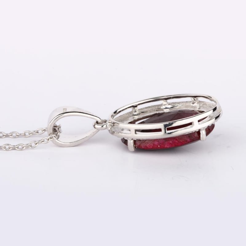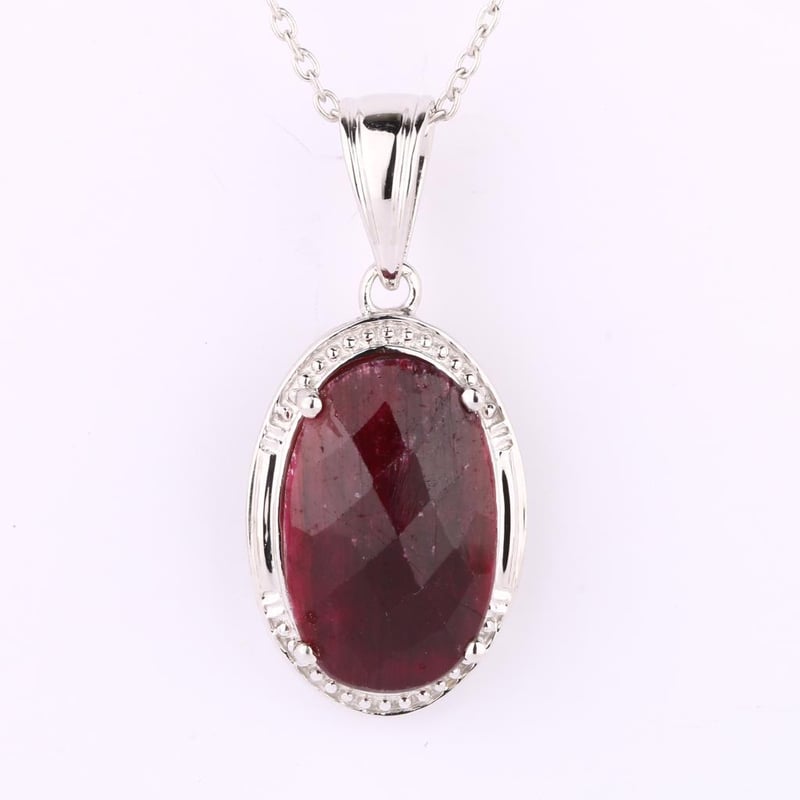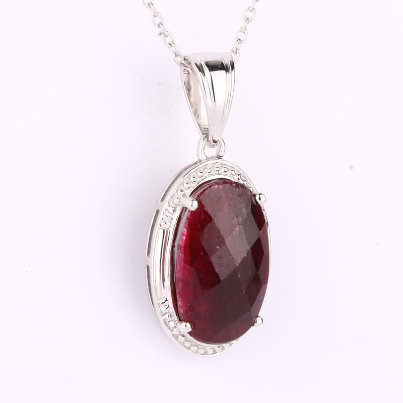 Radiant Dyed Ruby Checkerboard Pendant Elevate your jewelry collection with this exquisite Dyed Ruby Checkerboard Oval Pendant, measuring an opulent 16x10mm, and boasting a captivating height of 5.80mm. The deep, rich hues of the dyed ruby are artfully arranged in a checkerboard pattern, reflecting light with every movement and creating a mesmerizing play of color. Suspended gracefully from a delicate SP1 cable chain, this pendant is not just a piece of jewelry; it is a statement of elegance and sophistication. Weighing approximately 1.50 grams, the chain features a secure spring lock, ensuring both comfort and ease of wear. Perfect for a night out or an everyday touch of luxury, this pendant will undoubtedly become a cherished piece in your collection. Don’t miss the opportunity to own this striking embodiment of beauty and craftsmanship.