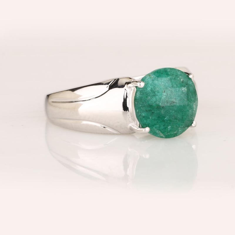 Exquisite Dyed Emerald Briolite Round 10.00mm RingDiscover a captivating fusion of elegance and artistry with this stunning 10.00mm Dyed Emerald Briolite ring. Nestled in a meticulously crafted setting, this brilliant stone boasts a height of 4.70mm, creating a striking presence that draws the eye and ignites the imagination. The deep, verdant hues of the dyed emerald briolite evoke the lush landscapes of a hidden paradise, while its radiant cut reflects light in a mesmerizing dance of color and brilliance. This ring is more than just a piece of jewelry; it is a statement of sophistication and individuality, perfect for the discerning collector or as a timeless gift for a loved one.Whether adorning your hand at an elegant soirée or gracing your jewelry collection, this exquisite ring promises to enhance any ensemble with its luxurious charm. Don’t miss the opportunity to own a piece that captures the essence of nature’s beauty, transformed into a work of art. Embrace the allure and bid on this exceptional piece today.