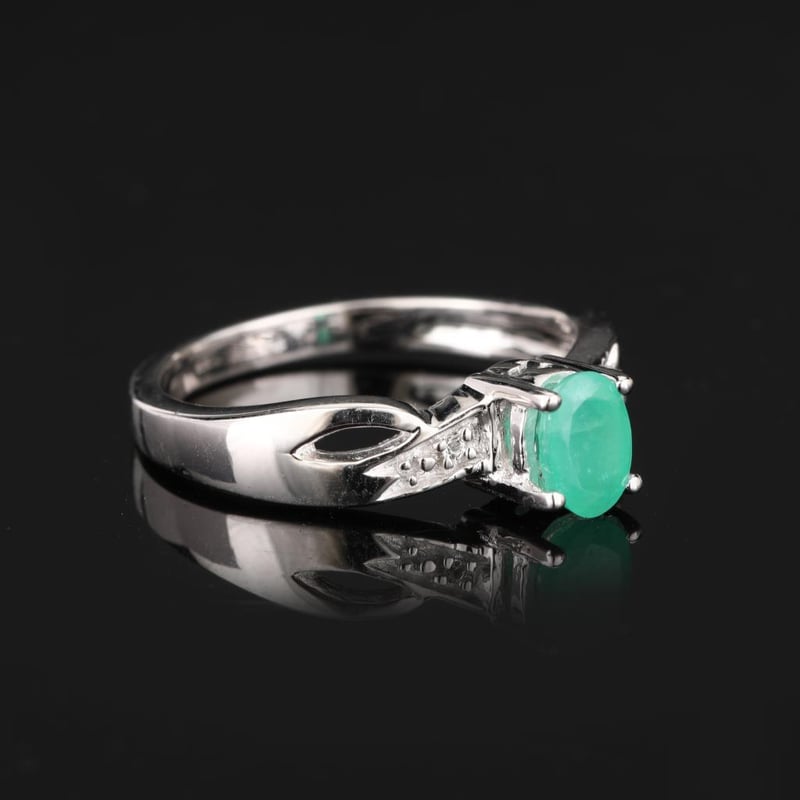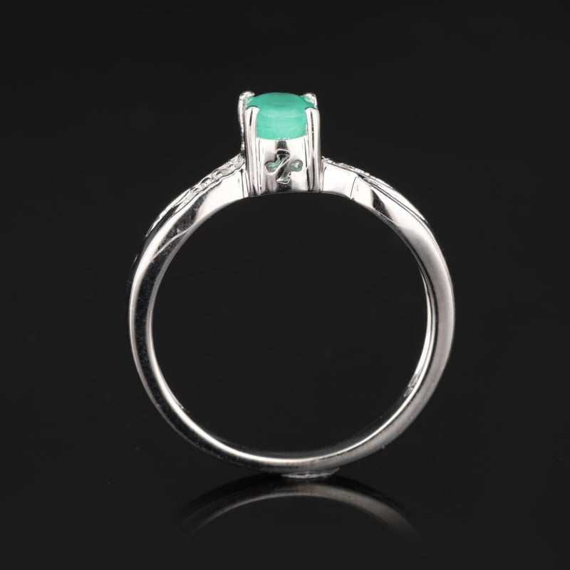 Sakota Emerald Elegance Ring with Radiant White Topaz AccentsIndulge in the captivating charm of this exquisite ring, showcasing a stunning Sakota emerald in a lush oval cut of 6x4mm. The emerald, renowned for its vibrant green hue and exceptional clarity, is the centerpiece of this luxurious creation, radiating a sense of timeless elegance and natural beauty. Surrounding the emerald are two dazzling round white topaz stones, each measuring 1.00mm, that sparkle with brilliance and enhance the overall allure of the piece. Set in a meticulously crafted band, this ring harmonizes the rich color of the emerald with the pristine white of the topaz, creating a striking contrast that draws the eye. Perfectly suited for any occasion, this ring is more than just a piece of jewelry; it is a statement of sophistication and grace. Whether worn for a special celebration or as an everyday adornment, the Sakota Emerald Elegance Ring is destined to become a cherished favorite in any jewelry collection. Don’t miss the opportunity to claim this exquisite treasure as your own.