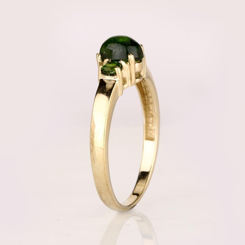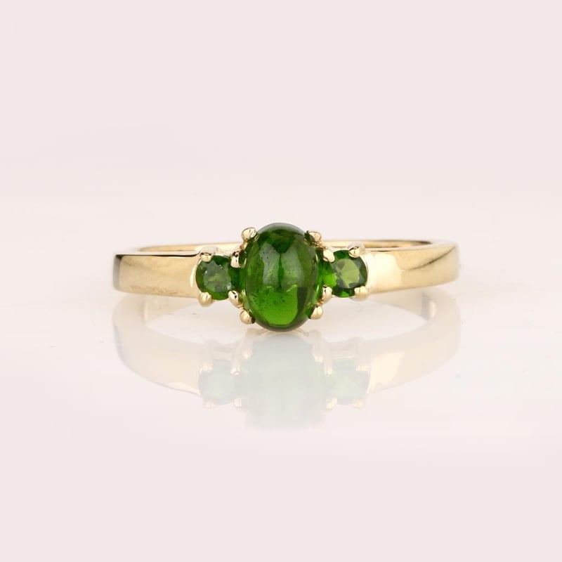 Exquisite Chrome-Diopside Ring Set – A Symphony of Green EleganceIndulge in the enchanting allure of this stunning ring set, featuring a captivating combination of Chrome-Diopside gemstones that radiate a vibrant green hue reminiscent of lush emerald forests. The centerpiece of this exquisite design is a magnificent oval Chrome-Diopside, measuring 7x5mm, which boasts a deep, rich color that is sure to catch the eye and spark conversation. Flanking the central stone are two perfectly matched round Chrome-Diopside stones, each 3.00mm, adding a touch of brilliance and symmetry to this luxurious piece.Crafted with meticulous attention to detail, this ring set encapsulates the essence of sophistication and style. The unique play of light within each gem creates a mesmerizing effect, ensuring that this piece will stand out in any jewelry collection. Whether worn alone or as part of a layered look, this ring set promises to enhance your elegance and make a statement of individuality.Embrace the beauty of nature with this extraordinary Chrome-Diopside ring set, a perfect choice for the discerning collector or as a thoughtful gift for someone special. Don’t miss the chance to own this exquisite piece at auction—where luxury meets artistry.