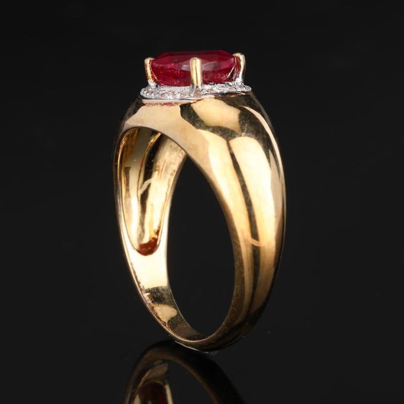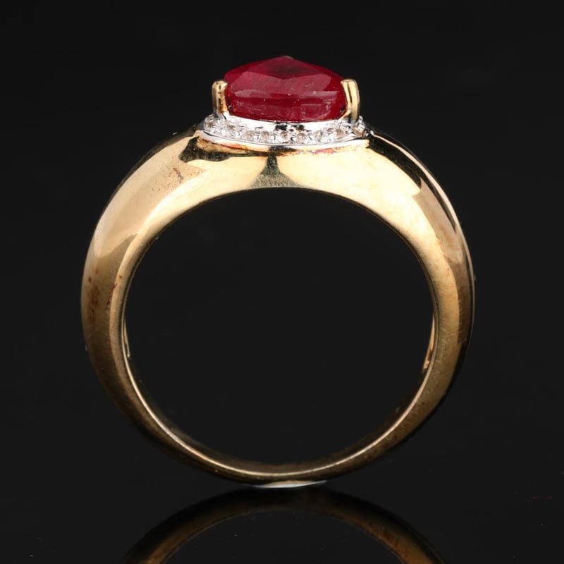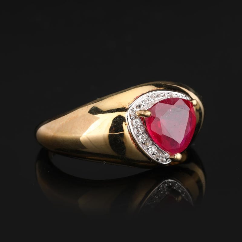 Radiant Elegance: Glass Filled Ruby Trillion & White Topaz RingIndulge in a symphony of color and brilliance with this exquisite ring, featuring a captivating glass-filled ruby trillion at its heart. Measuring an impressive 8.00mm, this stunning ruby showcases a deep, velvety red hue that evokes the allure of a sunset, expertly cut to reflect light from every angle. Surrounding this striking centerpiece are 21 round white topaz stones, each 1.00mm in diameter, artfully arranged to create a halo of shimmering brilliance that enhances the ruby's fiery glow.Crafted in a lustrous white pen rhodium finish, this ring not only exudes luxury but also promises lasting elegance with its durable and tarnish-resistant qualities. The intricate design combines classic sophistication with modern flair, making it the perfect accessory for any occasion—be it an intimate dinner or a grand gala. Embrace the enchanting allure of this unique piece and let the vibrant ruby and sparkling topaz illuminate your style. Don’t miss the opportunity to own this remarkable ring that combines luxury and artistry in one breathtaking creation.