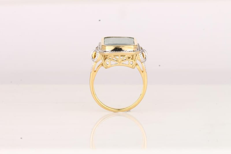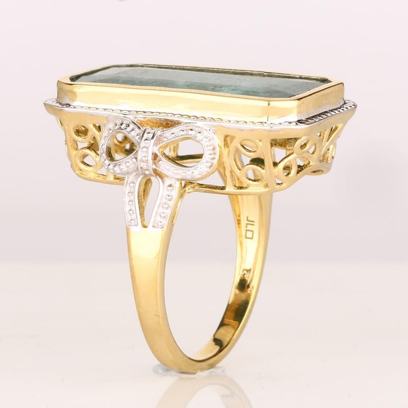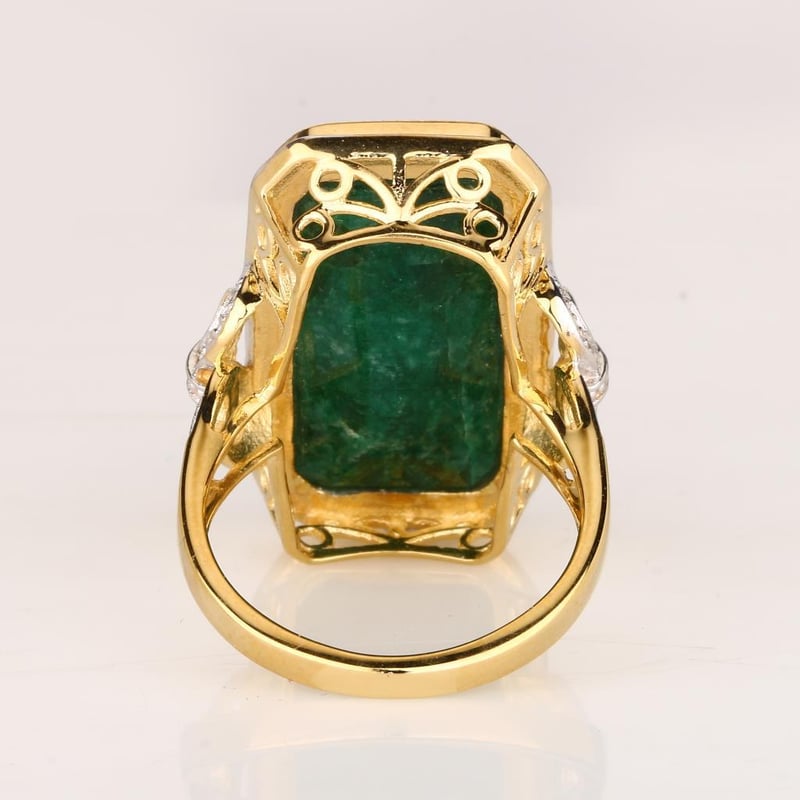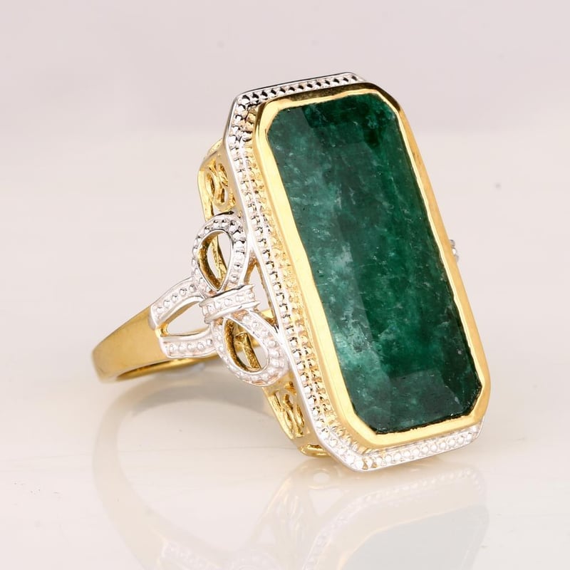 Stunning Dyed Emerald Octagon Ring – A Touch of EleganceDiscover the allure of elegance with this exquisite dyed emerald octagon ring, a true statement piece that will elevate any jewelry collection. Featuring a captivating 24x12mm octagonal-cut dyed emerald, this ring showcases a vibrant green hue that radiates sophistication and charm. The perfectly crafted stone, with a height of 4.70mm, is beautifully set in a luxurious white pen rhodium band, adding a modern twist to its timeless design. This ring is not just an adornment; it's a reflection of your exquisite taste and a testament to your individuality. Whether worn for a special occasion or as a daily indulgence, it is sure to draw admiration and envy. Embrace the elegance and make this exceptional piece yours at this exclusive auction.
