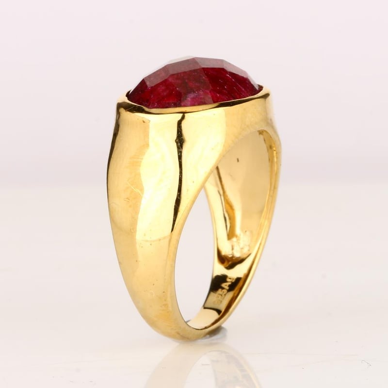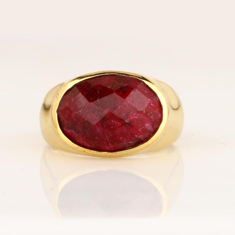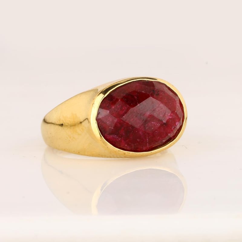 Exquisite Dyed Ruby Hi-Dome Flat Bottom Checker Board Oval - 14x10mmIndulge in the luxurious allure of this stunning dyed ruby, meticulously crafted into a magnificent hi-dome flat bottom checkerboard oval. Measuring a generous 14x10mm with a captivating stone height of 4.00mm, this striking gem radiates a rich, velvety hue that evokes the timeless elegance of royal treasures.The checkerboard faceting adds an exquisite dimension, capturing and refracting light in a dazzling display that enchants from every angle. Its bold, dramatic color and unique cut make it an exceptional centerpiece for any jewelry creation, whether to adorn a ring, pendant, or statement piece.Embrace the opportunity to own a piece that embodies passion and sophistication, perfect for the discerning collector or those seeking to elevate their personal style. This dyed ruby is not just a gemstone; it is a vibrant expression of individuality and elegance, destined to become a cherished heirloom for generations to come. Don’t miss your chance to add this exquisite jewel to your collection.