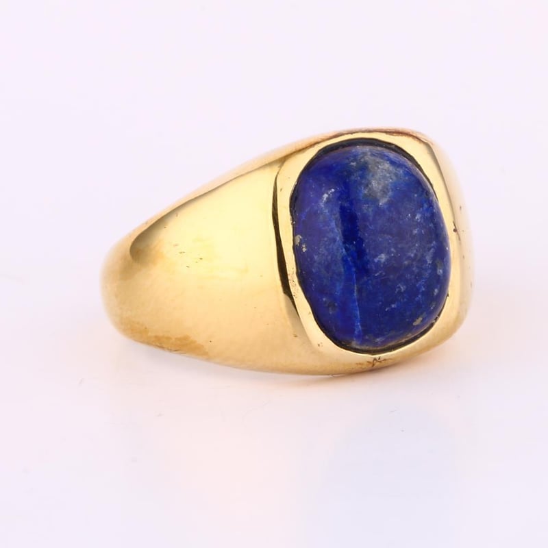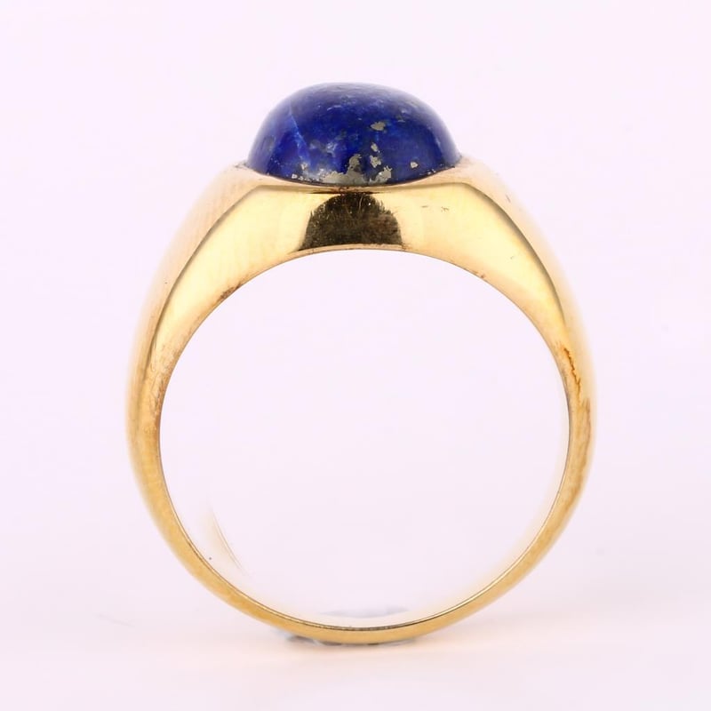 Lapis Lazuli CAB Cushion Ring - A Celestial DelightIndulge in the enchanting allure of our exquisite Lapis Lazuli CAB Cushion Ring, featuring a mesmerizing 12x10mm gemstone that exudes sophistication and timeless elegance. This stunning piece showcases a rich azure blue hue, flecked with golden pyrite inclusions that mimic a starry night sky, captivating the beholder with its celestial beauty.Crafted with precision and passion, the ring's design highlights the natural radiance of the lapis lazuli, set in a meticulously designed band that enhances its luxurious appeal. The cushion cut not only amplifies the stone's vibrant color but also reflects light beautifully, creating an eye-catching centerpiece that speaks of both history and opulence.Perfect for the discerning collector or as a statement piece for any occasion, this ring embodies the spirit of ancient royalty while seamlessly fitting into modern aesthetics. Elevate your jewelry collection with this extraordinary Lapis Lazuli CAB Cushion Ring—an emblem of grace and sophistication that will surely turn heads and spark conversations. Don’t miss the opportunity to own this exquisite treasure at our upcoming auction.