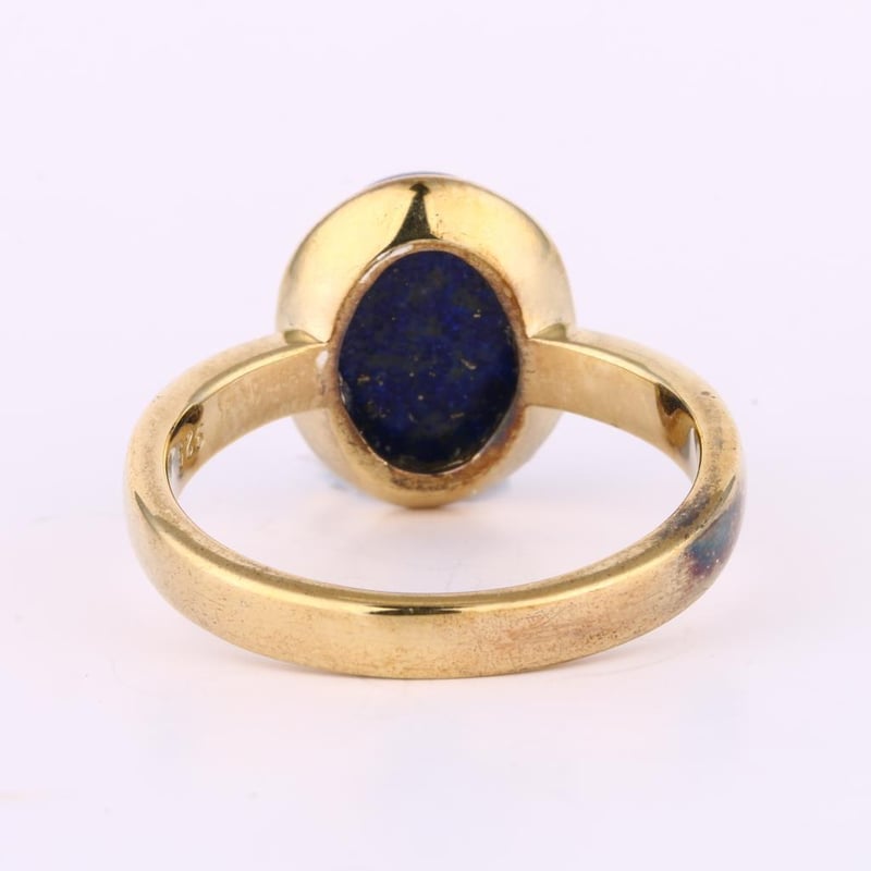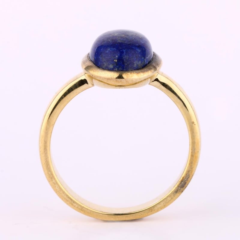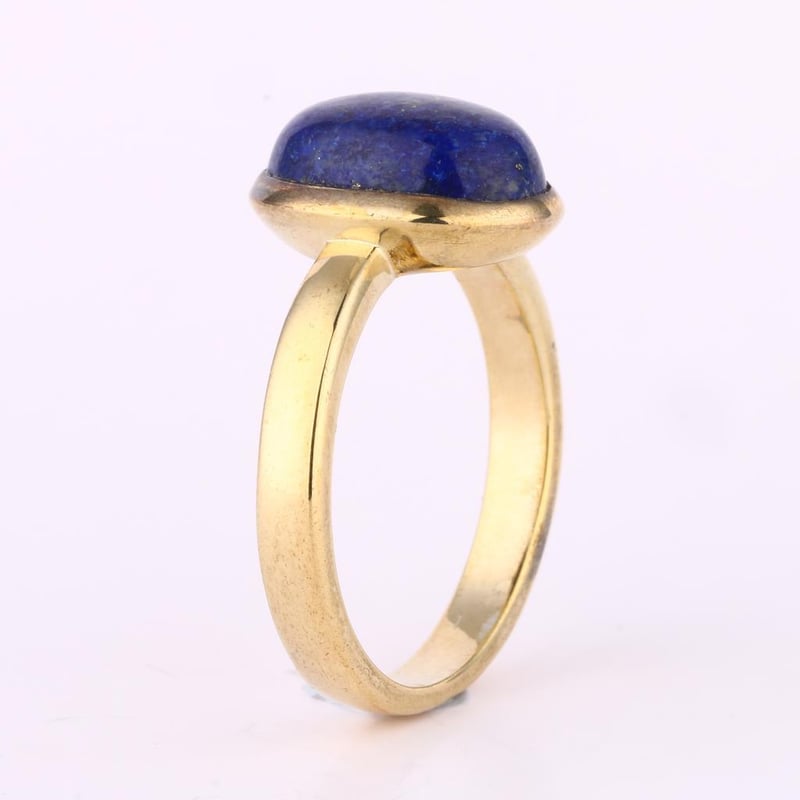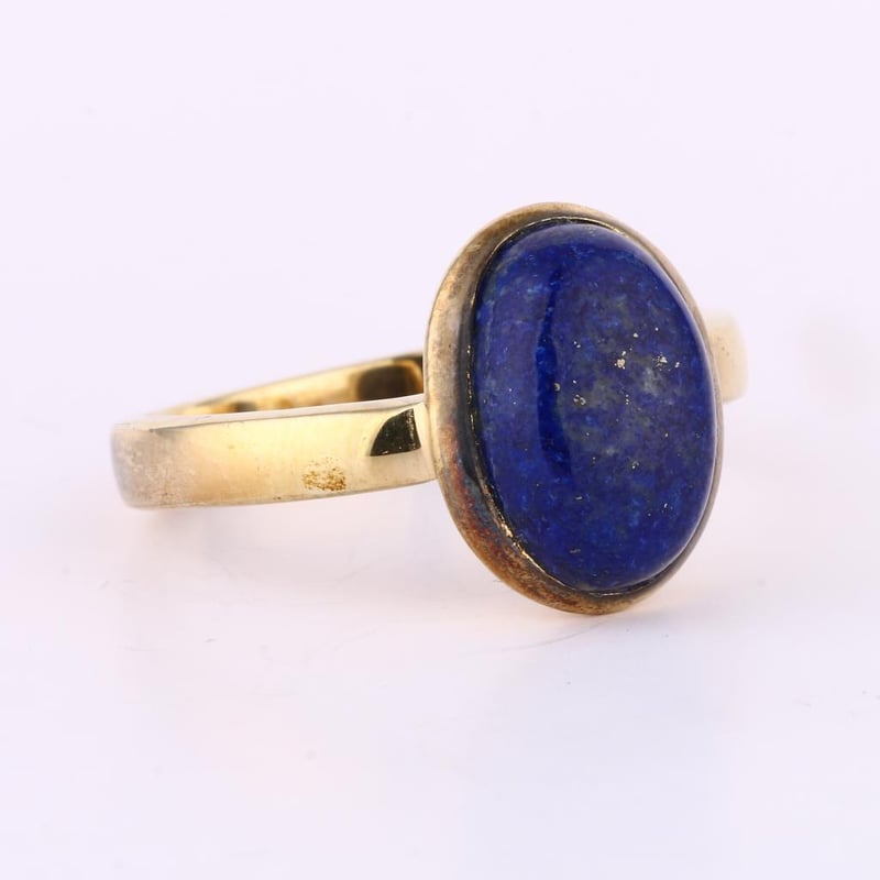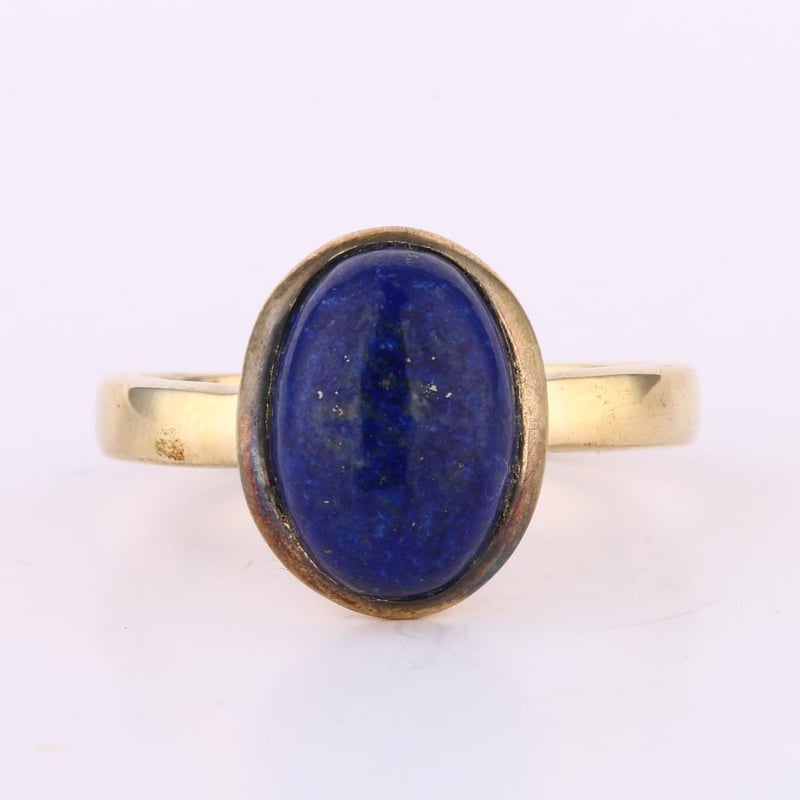 Lapis Lazuli CAB Oval Ring - Exquisite 14x10mm Gemstone Step into a realm of timeless elegance with this stunning Lapis Lazuli CAB Oval ring, featuring a magnificent 14x10mm gemstone that captures the essence of the night sky. The rich, deep blue hue of the lapis lazuli is beautifully accented by delicate golden specks of pyrite, reminiscent of glimmering stars twinkling against a backdrop of celestial wonder.The oval-cut stone, expertly polished to a brilliant sheen, is set in a classic band that enhances its natural beauty while providing a comfortable fit. This piece is perfect for the discerning jewelry lover who appreciates the allure of rare gemstones and the stories they tell. Whether worn as a statement piece at a gala or cherished as a daily adornment, this Lapis Lazuli ring promises to be a conversation starter, evoking admiration and intrigue. Indulge in the luxury of this unique piece, and let it elevate your jewelry collection to new heights. Don’t miss the opportunity to claim this exquisite treasure in our upcoming auction.