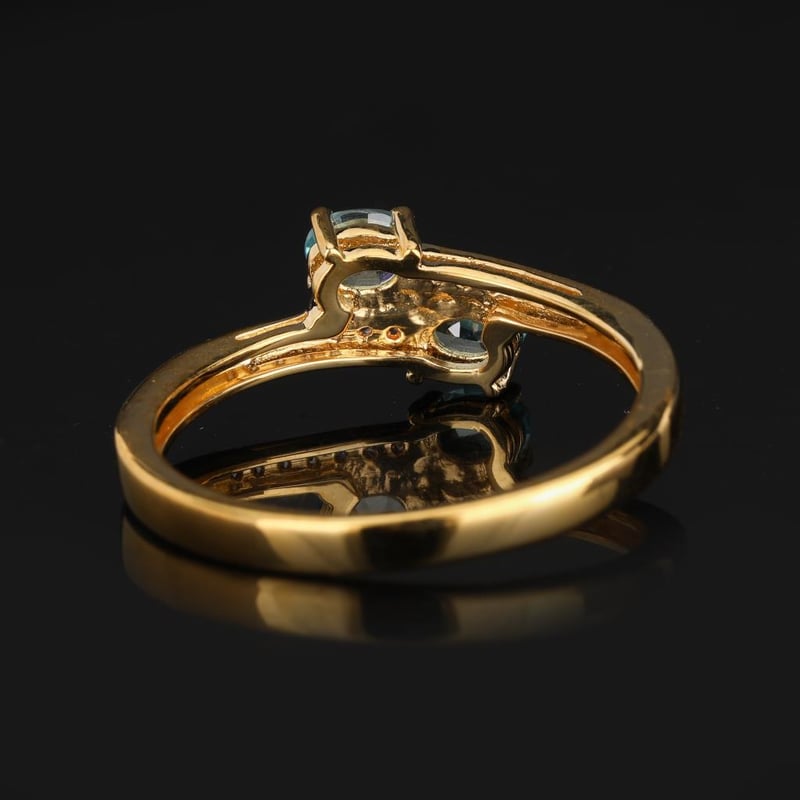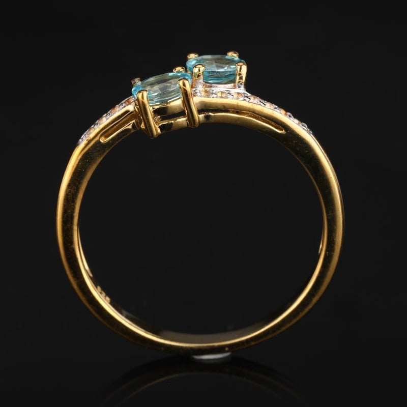 Elysian Elegance: Blue Zircon and White Topaz RingStep into a realm of timeless beauty with this exquisite ring, featuring two resplendent oval blue zircons, each measuring 5x4mm, that capture the essence of a tranquil azure sea. The vibrant blue of the zircons is perfectly complemented by the brilliance of fourteen delicate round white topaz stones, each 1.20mm, meticulously set to create a halo of light that dances with every movement. Crafted in luxurious white pen rhodium, this ring not only showcases the stunning gemstones but also adds a touch of modern sophistication and durability, ensuring it will remain a cherished piece in your collection for years to come. The harmonious blend of color and sparkle makes this ring a versatile accessory, perfect for both everyday elegance and special occasions. Adorn your fingers with this masterpiece and let your inner radiance shine through.
