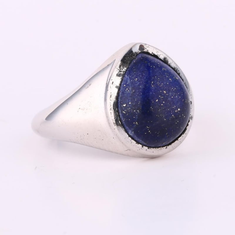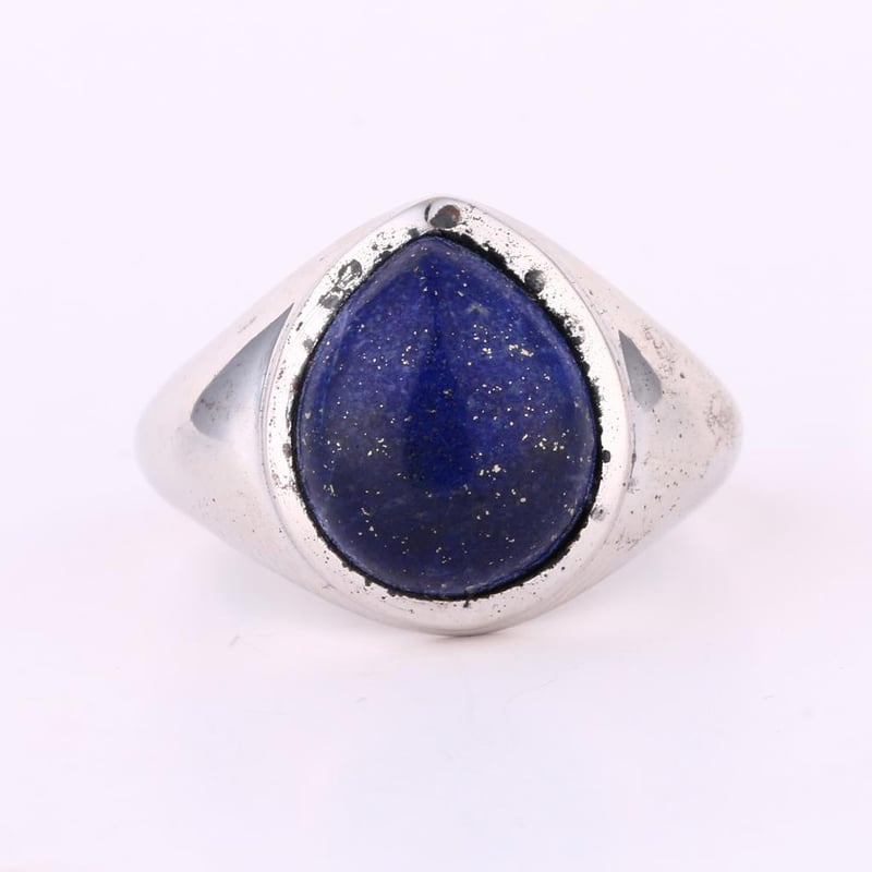 Exquisite Lapis Lazuli Cabochon Pear Ring - 12x10mmEmbrace the allure of the deep azure skies with this stunning Lapis Lazuli cabochon pear ring. Measuring 12x10mm, this exquisite piece showcases a remarkable stone height of 4.60mm, perfectly crafted to highlight the rich, celestial blue of the lapis. The captivating sandblasting texture adds a unique tactile quality, enhancing the stone’s natural beauty and creating a striking contrast against the polished metal setting. Each glance will remind you of the timeless elegance associated with lapis lazuli, a gemstone treasured since antiquity for its vibrant color and regal charm. This ring is not just an accessory; it's a statement of sophistication and individuality, destined to elevate any ensemble—be it for a special occasion or a touch of everyday luxury. Indulge in the enchanting spirit of this remarkable piece and let it become a cherished addition to your jewelry collection.