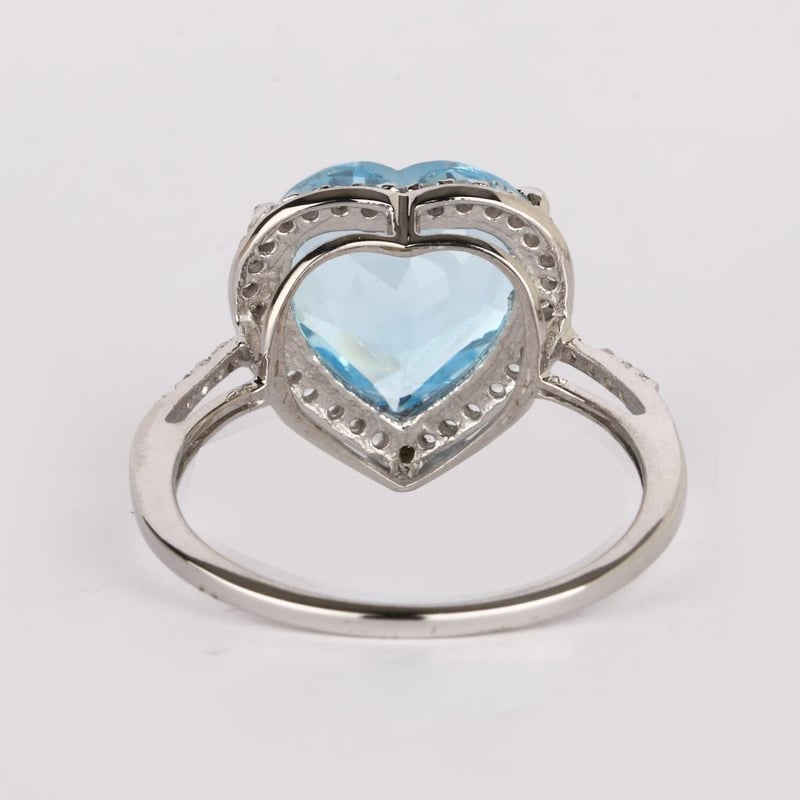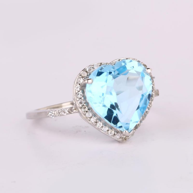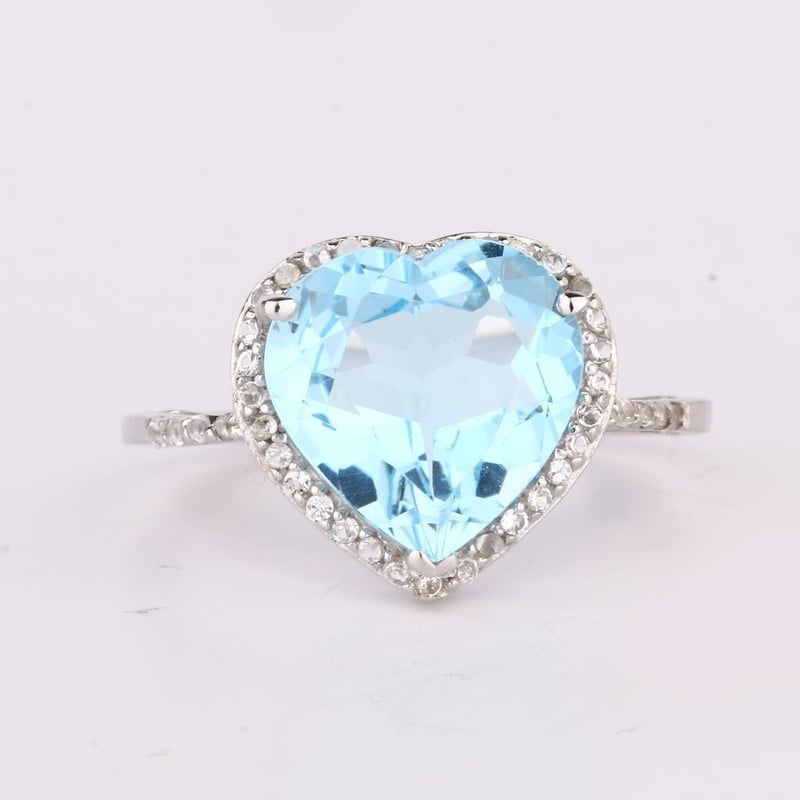 Heavenly Elegance: Blue Topaz and White Topaz RingIndulge in the exquisite charm of this stunning ring, featuring a captivating heart-shaped Blue Topaz at its center, measuring an impressive 12.00mm. The rich, tranquil blue of the gemstone radiates a sense of serenity and sophistication, reminiscent of the clearest summer skies. Surrounding this enchanting centerpiece are a symphony of sparkling White Topaz stones—32 round brilliant-cut stones of 1.10mm each and an additional 8 stones of 1.00mm—meticulously set to create a dazzling halo effect. Crafted with precision, this ring is not just a piece of jewelry; it is a statement of elegance and luxury. The harmonious blend of vibrant blue and sparkling white creates a timeless aesthetic that complements any attire, from everyday wear to formal occasions. Whether you are treating yourself or searching for the perfect gift, this ring promises to be a cherished addition to any jewelry collection. Adorn your fingers with this masterpiece and let its brilliance illuminate your beauty.