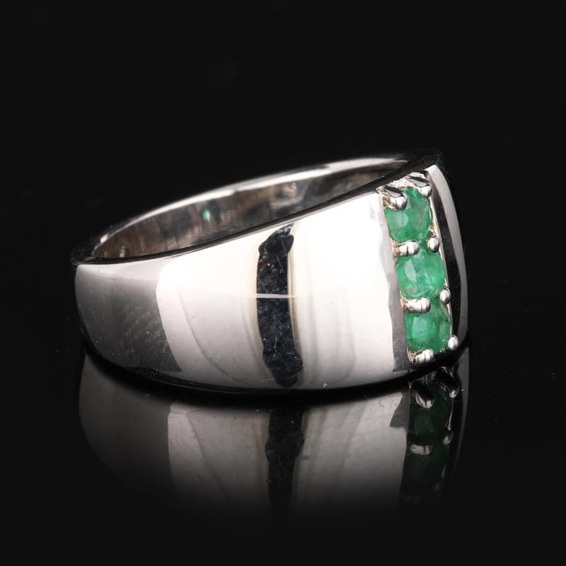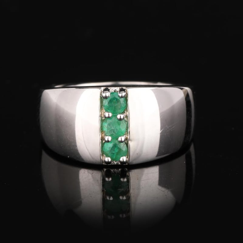 Zambian Emerald Elegance: Exquisite 3-Piece Round RingIndulge in the breathtaking allure of this stunning ring featuring three radiant Zambian emeralds, each meticulously cut into a perfect 3.00mm round shape. Renowned for their exceptional color, these emeralds boast a deep, vivid green hue that embodies the rich heritage of Zambian gemstones. The harmonious trio is expertly set in a sleek band that enhances their natural beauty, creating a captivating focal point that draws the eye.Crafted with precision and a passionate attention to detail, this exquisite piece is more than just a ring; it is a statement of elegance and sophistication. Ideal for the discerning collector or anyone wishing to adorn themselves with a touch of luxury, this ring captures the essence of timeless beauty. Allow the enchanting radiance of these emeralds to elevate your jewelry collection and make a lasting impression at any occasion.
