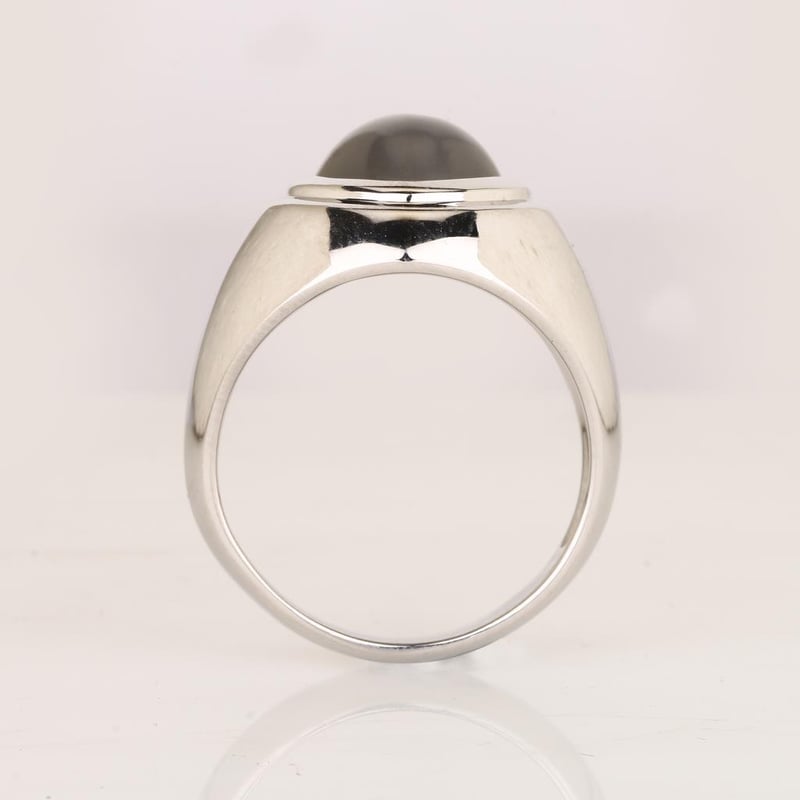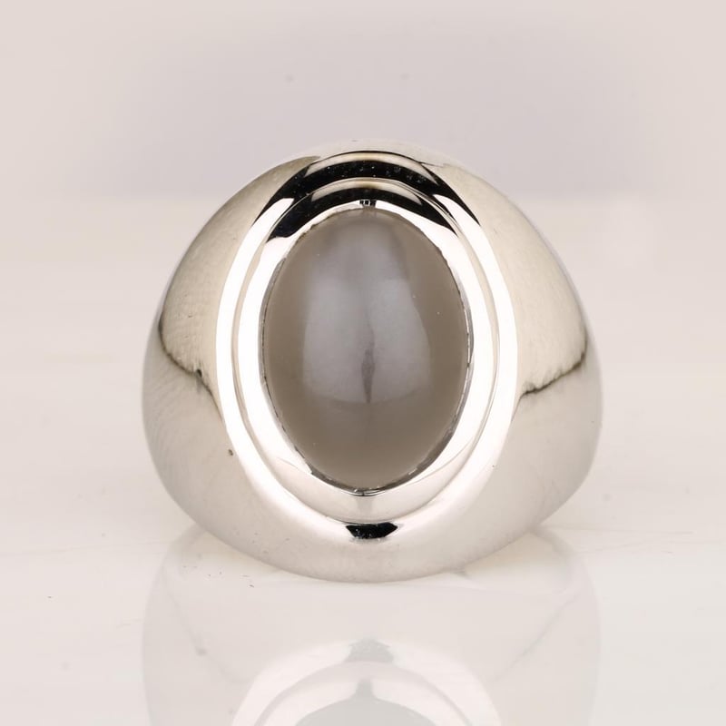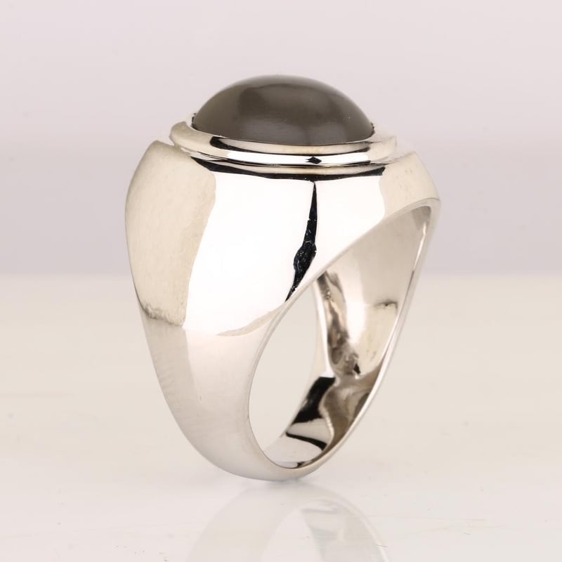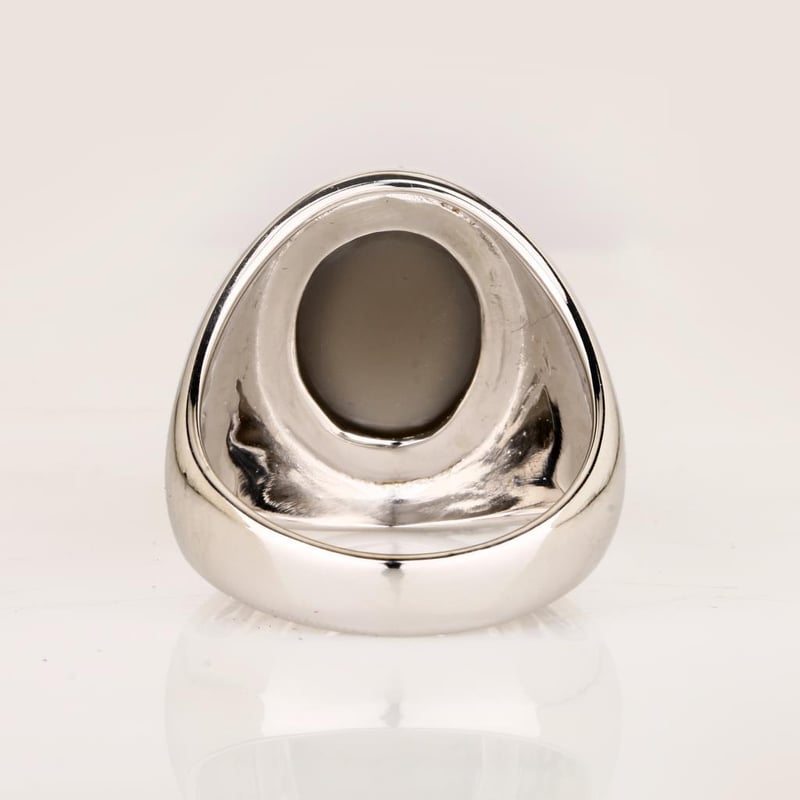 Elegant Grey Moonstone CAB Oval Ring - 14x10mmDiscover the ethereal beauty of this exquisite Grey Moonstone CAB Oval Ring, an enchanting piece that gracefully captures the mystique of the moonlit night. Measuring 14x10mm, this stunning cabochon showcases the stone's shimmering surface, which reflects a soft, silvery glow, evoking a sense of calm and tranquility.With a height of 6.10mm, the ring's design effortlessly elevates the magnificent stone, allowing it to take center stage. The smooth, polished surface of the moonstone is complemented by an elegant setting that enhances its natural allure, making it a perfect statement piece for any occasion. Whether worn as a standalone accessory or paired with other fine jewelry, this ring is a celebration of sophistication and timeless elegance. Adorn yourself with this captivating piece and let the enchanting glow of the Grey Moonstone illuminate your style. Don't miss the opportunity to own this piece of celestial beauty, destined to become a treasured heirloom.