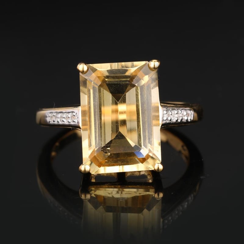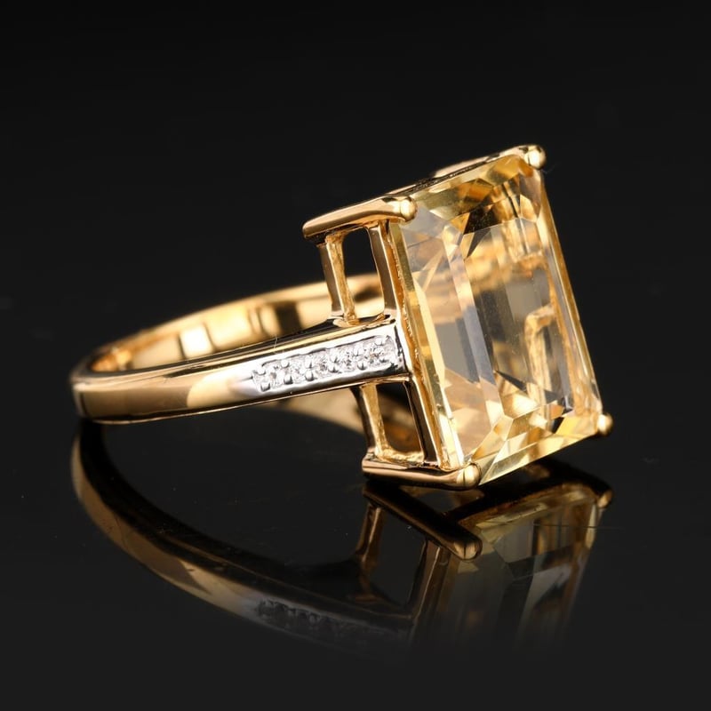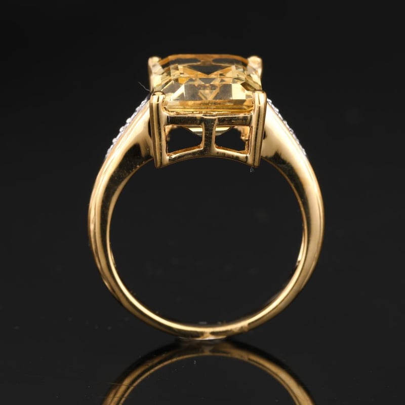 Radiant Citrine and White Topaz Ring in White Pen RhodiumStep into a world of elegance with this stunning ring, showcasing a brilliant octagonal citrine at its heart. Measuring 14x10mm, the vibrant golden hue of the citrine exudes warmth and sophistication, reminiscent of sunlit afternoons and golden hour glow. Surrounding this captivating centerpiece, ten delicate white topaz stones, each 1.00mm in size, sparkle with a serene brilliance, enhancing the ring's overall luminosity.Crafted in exquisite white pen rhodium, the band offers a contemporary touch that complements the classic charm of the gemstones. With a stone height of 6.00mm, this ring stands proudly on the finger, ensuring that it catches the light—and the eyes of admirers—with every gesture. Perfect for both everyday wear and special occasions, this luxurious piece is a testament to timeless beauty and refined style. Bid now to make this enchanting ring a part of your jewelry collection and let its radiant allure elevate any ensemble.