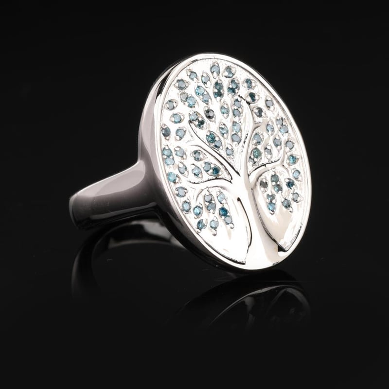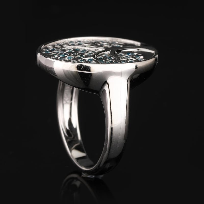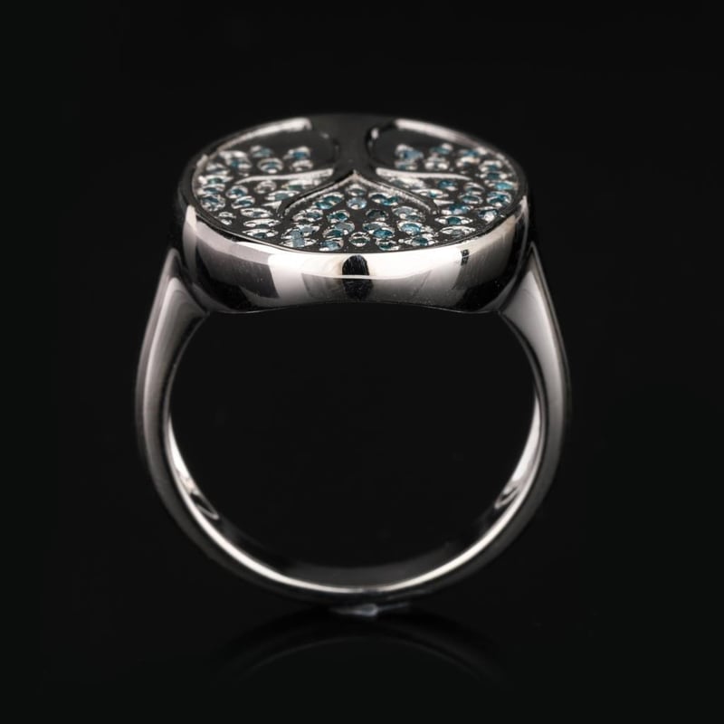 Captivating Blue Diamond Round Ring – 71 Sparkling AccentsIndulge in the exquisite allure of this stunning ring, featuring a mesmerizing collection of 71 blue diamonds, each precisely cut to a radiant 0.80mm. The enchanting hue of the diamonds evokes a sense of serene elegance, reminiscent of a twilight sky, while their brilliant sparkle captures the light in a way that is simply breathtaking. Set in a tasteful and timeless design, this ring is a perfect embodiment of luxury and sophistication, making it an ideal statement piece for any jewelry collection. Whether worn on special occasions or as an everyday adornment, the ring promises to elevate your style with its captivating charm. Bid now to own a piece of elegance that transcends time.