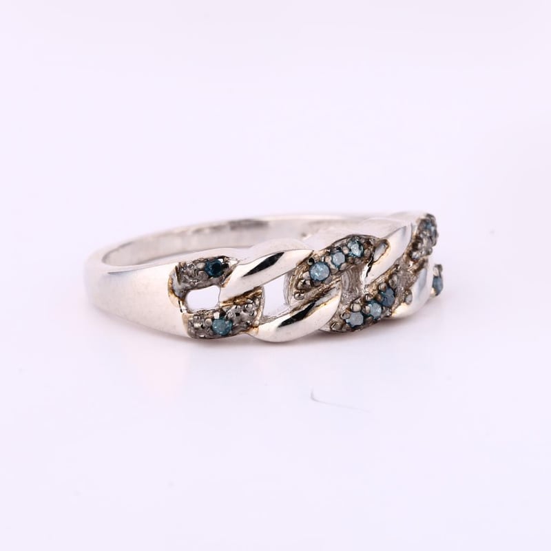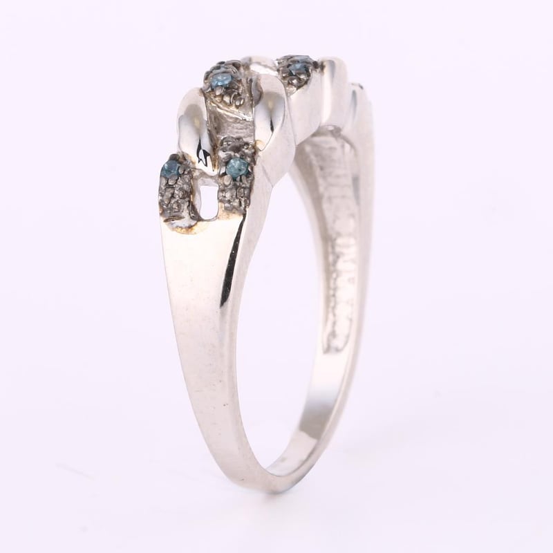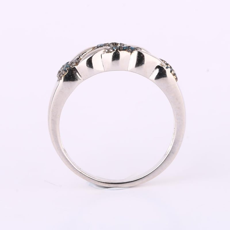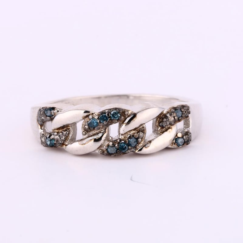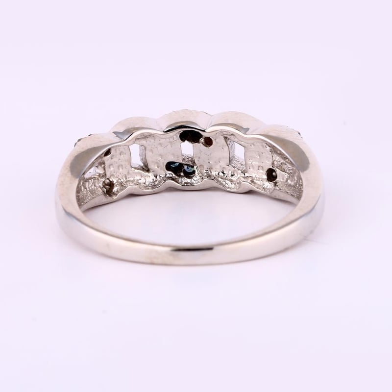 Captivating Blue Diamond Elegance: A Dazzling 10-Piece Round RingStep into a world of sophistication and allure with this exquisite ring, featuring ten brilliant blue diamonds, each measuring 1.00mm. Set against the striking contrast of a black pen rhodium finish, this piece is a masterclass in modern elegance.Each diamond glimmers with an intensity that draws the eye, showcasing a captivating hue that symbolizes strength, wisdom, and nobility. The meticulous craftsmanship of the ring enhances its luxurious appeal, ensuring that the diamonds are perfectly showcased, allowing their vibrant color to shine through.Whether worn as a statement piece or added to an existing collection, this ring is designed to elevate any ensemble. Perfect for those who appreciate the finer things in life, it is not just a piece of jewelry; it is a testament to exceptional taste and a celebration of individuality. Don’t miss the opportunity to own this stunning piece of artistry that embodies elegance and sophistication.