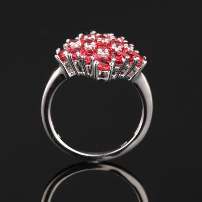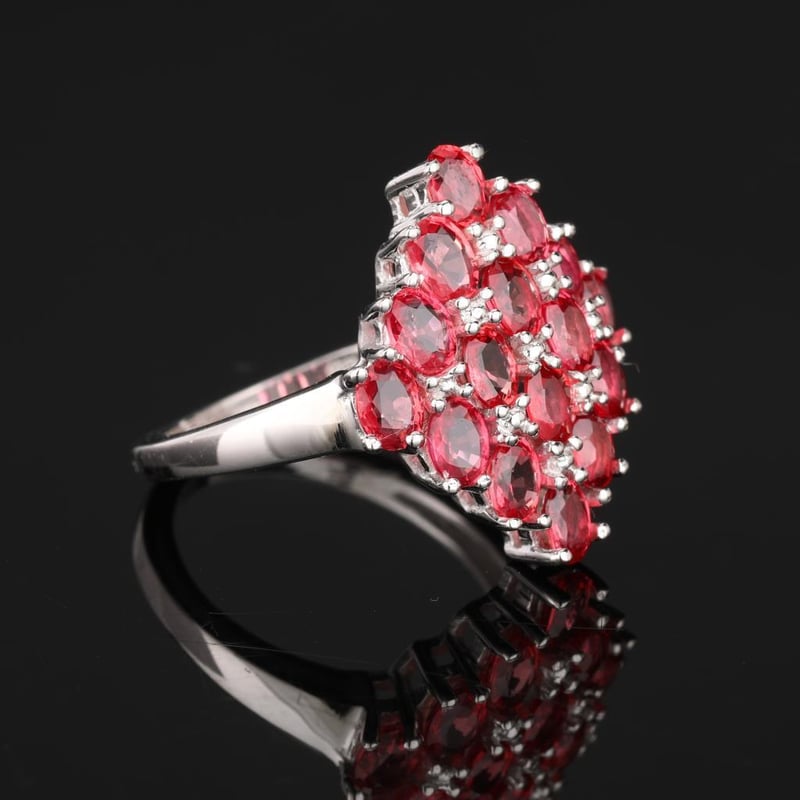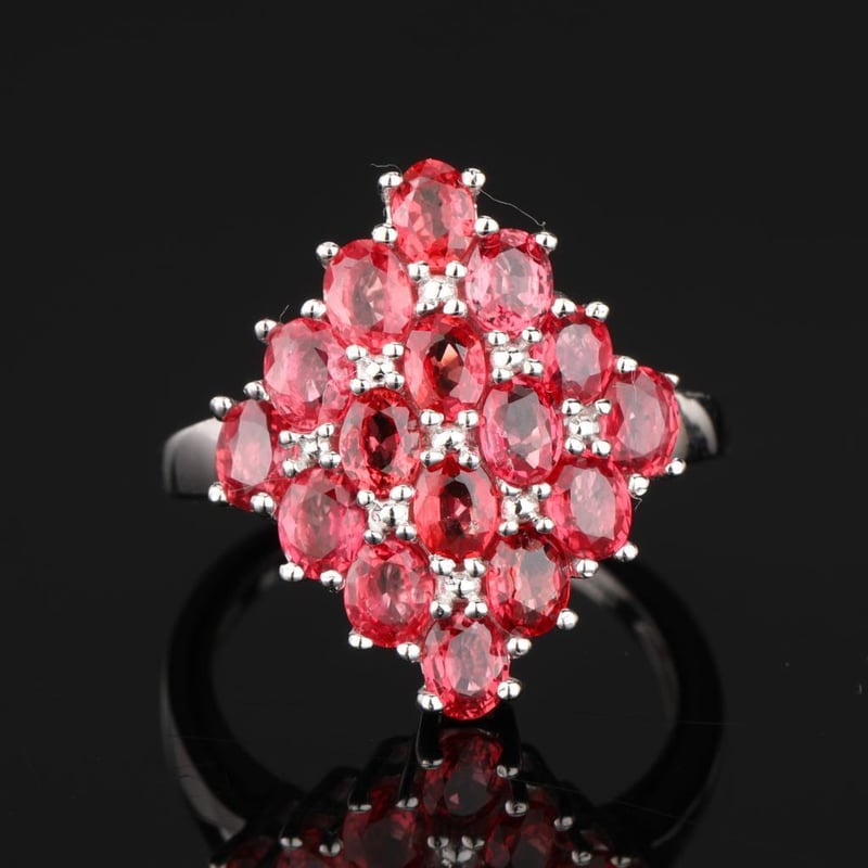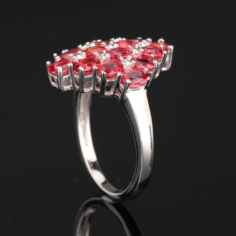 Radiant Elegance: Orange Sapphire Oval Ring with 16 Pristine AccentsIndulge in the captivating allure of this exquisite ring, adorned with 16 shimmering oval orange sapphires, each measuring 4x3mm. Expertly crafted to embrace the beauty of these fiery gemstones, this piece is a true testament to exquisite artistry. The vibrant orange hues of the sapphires evoke a sense of warmth and vitality, reminiscent of a breathtaking sunset.The ring's design harmoniously balances the boldness of the sapphires with a delicate band that enhances their brilliance without overshadowing their natural splendor. Perfect for both special occasions and everyday elegance, this ring is a luxurious statement piece that will undoubtedly turn heads and spark conversations.Whether you are celebrating a milestone or simply indulging in self-love, this radiant orange sapphire ring is an embodiment of sophistication and charm. Make it yours and illuminate your collection with a touch of divine elegance.