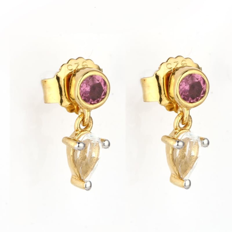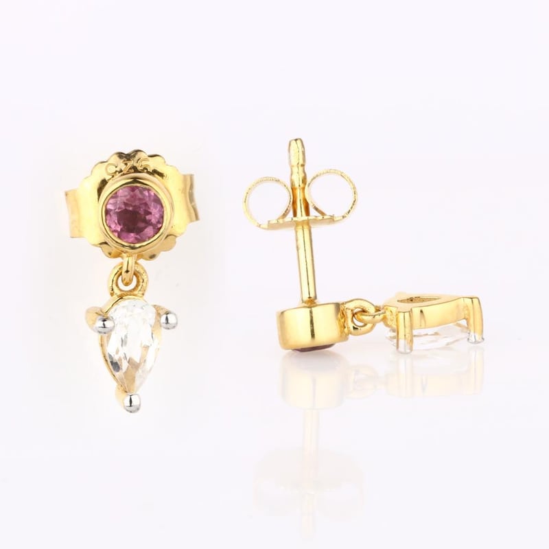 Ethereal Elegance: White Topaz and Pink Tourmaline EarringsStep into a realm of sophistication with these enchanting earrings, expertly crafted to captivate the senses. Featuring a stunning pear-shaped white topaz, measuring 5x3mm, each earring is a testament to the timeless appeal of classic gemstones. The pure brilliance of the topaz glimmers with every movement, reflecting light in a dazzling display that is sure to turn heads.Complementing the exquisite white topaz is a vibrant 3.00mm round pink tourmaline, adding a delightful pop of color and warmth. The contrast between the cool, crisp white and the soft blush pink creates a harmonious balance, making these earrings a versatile addition to any jewelry collection.Set in luxurious white pan rhodium, the earrings exude a contemporary elegance, ensuring durability while enhancing the overall aesthetic. Perfect for both daytime chic and evening glamour, these earrings are not just accessories; they are a statement of style and refinement.Embrace the allure of these exquisite earrings and let them elevate your look to new heights of sophistication. Don’t miss the opportunity to make them yours at this exclusive auction.