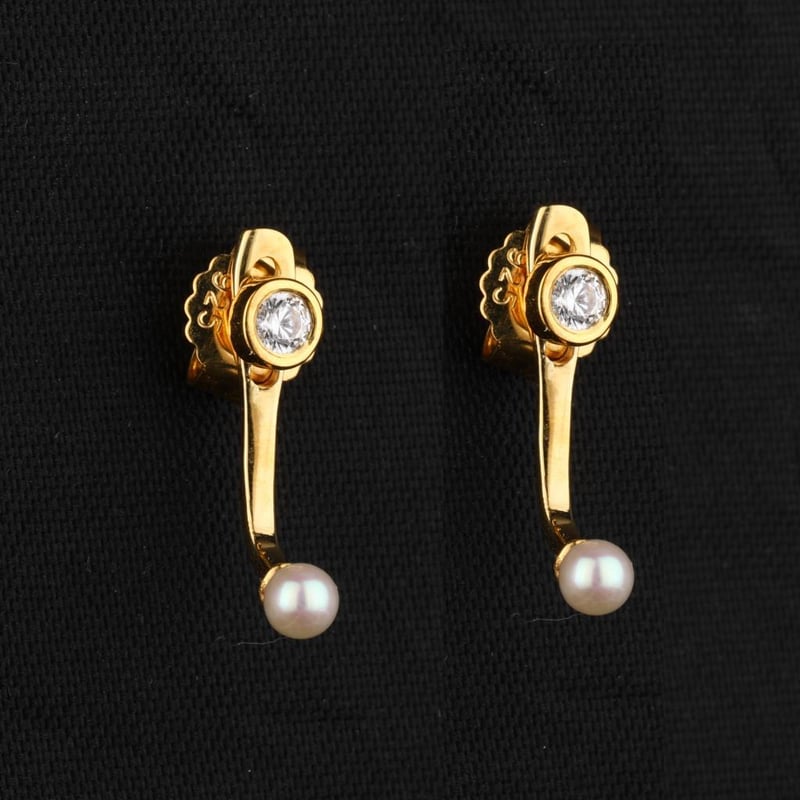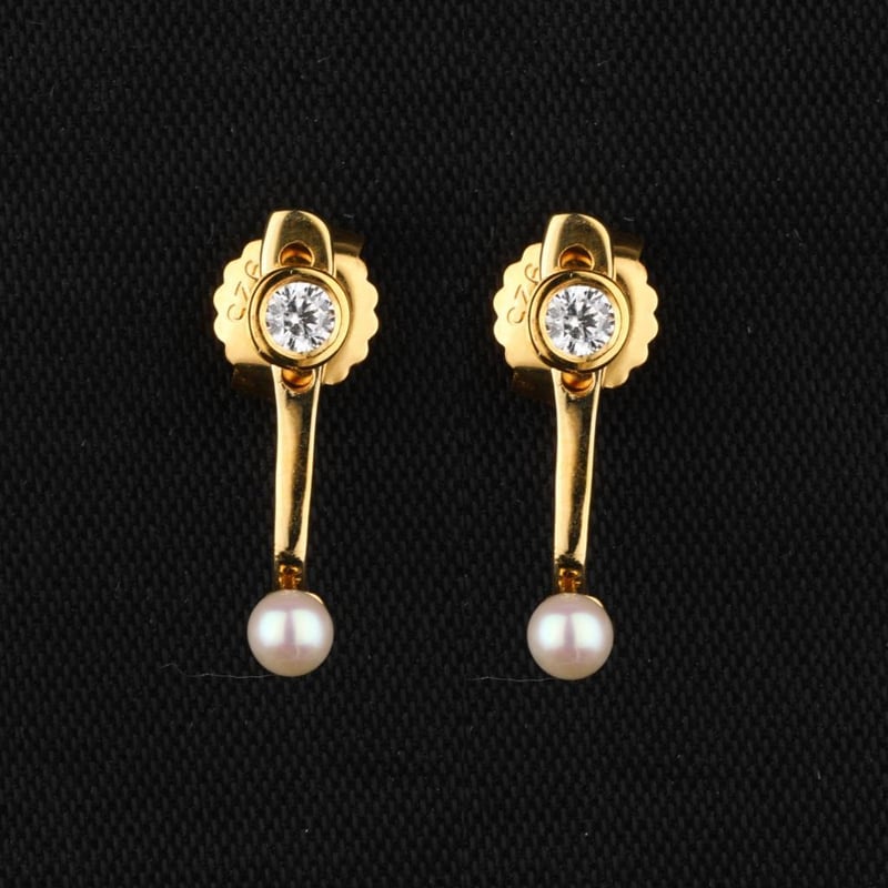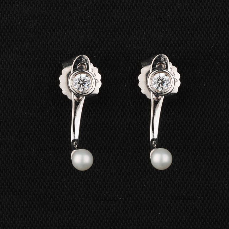 Ethereal Elegance: Pearl and White Cubic Zirconia EarringsIndulge in the enchanting allure of these exquisite earrings, meticulously crafted to elevate your jewelry collection. Featuring two lustrous half drill pearls, each a perfect 3.00mm, these gems embody sophistication and charm. Their delicate sheen captures the light beautifully, offering a timeless elegance that complements any ensemble.Surrounding the pearls, two brilliant white cubic zirconia stones, each measuring 2.50mm, add a sparkling contrast, enhancing the overall brilliance of this stunning piece. The harmonious blend of natural beauty and radiant sparkle creates an enchanting visual appeal, making these earrings a perfect accessory for both everyday wear and special occasions.Embrace the refinement of these earrings and let them become a cherished addition to your jewelry repertoire, reflecting your unique style and grace. Don’t miss the opportunity to own this exquisite pair that promises to captivate and inspire admiration.