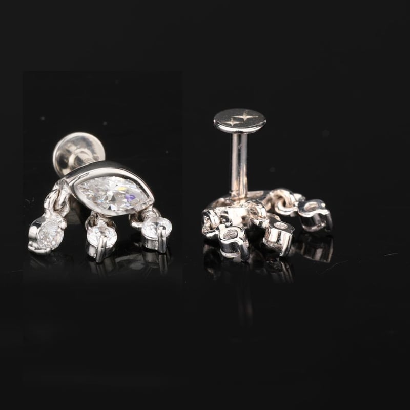 Ethereal Elegance: White Cubic Zirconia Marquise and Round EarringsIndulge in the enchanting allure of these exquisite earrings, showcasing a stunning marquise-cut white cubic zirconia measuring 5x2.50mm, elegantly complemented by three radiant round stones of 2.00mm each. Set in a lustrous white pan rhodium finish, these earrings are designed to capture the light with every movement, creating a dazzling display that is sure to turn heads.The marquise centerpiece, with its elongated silhouette, exudes a timeless sophistication, while the trio of round cubic zirconia adds a touch of classic charm. Perfect for both day and evening wear, these earrings are a versatile addition to any jewelry collection. Whether you’re dressing up for a gala or adding sparkle to a casual outfit, these earrings promise to elevate your ensemble with effortless grace.Embrace the brilliance and craftsmanship of these stunning earrings and let them become a cherished part of your jewelry repertoire. Don't miss the opportunity to own a piece that embodies both elegance and modernity.