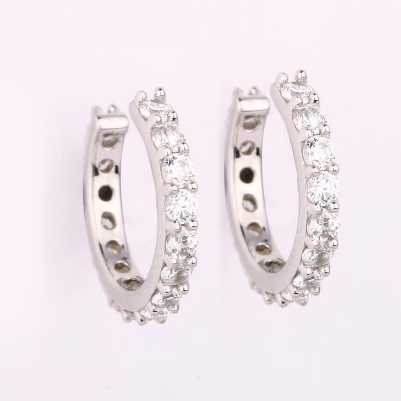 Eternal Elegance: White Cubic Zirconia Round EarringsIndulge in the timeless allure of these exquisite earrings, featuring 16 radiant white cubic zirconia stones, each expertly cut to 2.00mm, that shimmer like the finest diamonds. Set in a luxurious white pan rhodium finish, these earrings are a stunning testament to both craftsmanship and style.The delicate sparkle of the cubic zirconia dances with every movement, catching the light and drawing attention to your graceful features. Designed to complement any ensemble, from elegant evening wear to chic daytime attire, these earrings are the perfect accessory to elevate your look. Whether you’re celebrating a special occasion or simply wish to indulge in a touch of glamour, these white cubic zirconia round earrings are a must-have addition to your jewelry collection. Embrace the elegance and make a statement that lasts a lifetime.