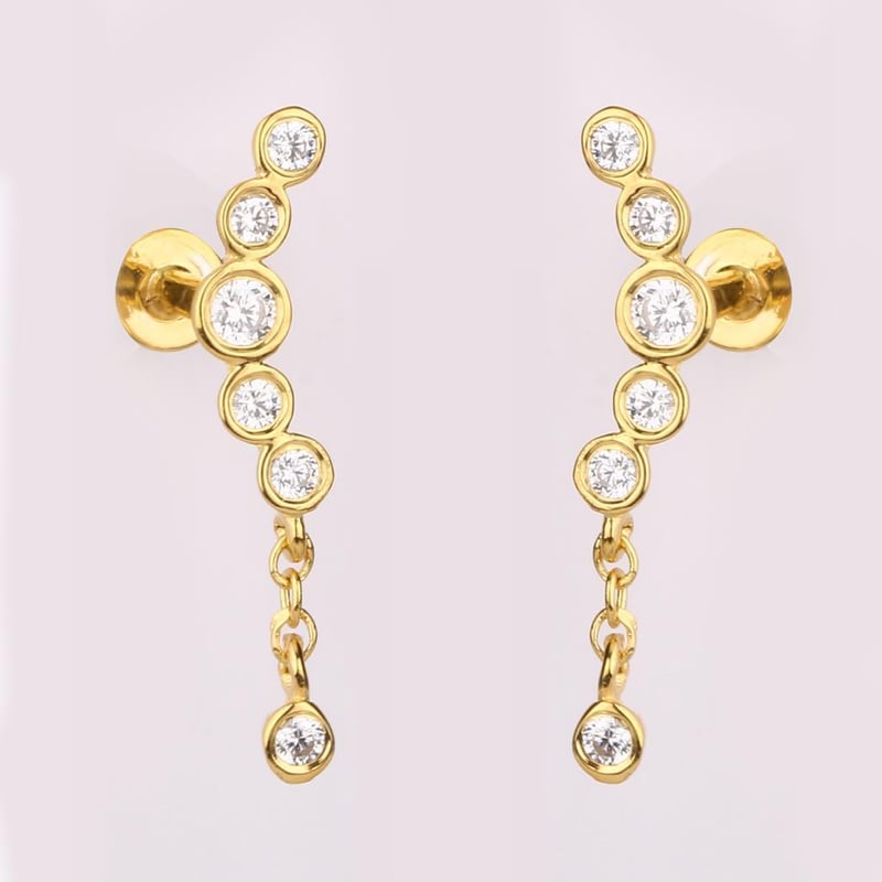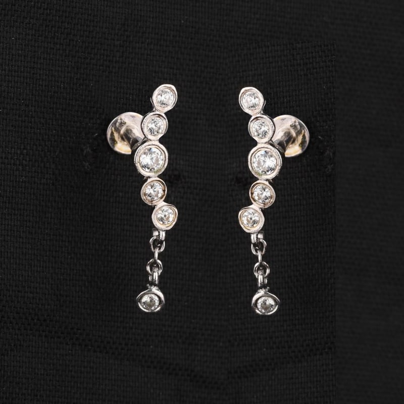 Ethereal Elegance: White Cubic Zirconia WAX SET EarringsStep into a realm of refined sophistication with these exquisite WAX SET earrings, featuring a stunning array of white cubic zirconia stones that capture the light with every movement. At the heart of each earring is a brilliant 2.00mm round white cubic zirconia, radiating a captivating sparkle that rivals the finest diamonds. Complemented by five delicately arranged 1.50mm round stones, these earrings create a harmonious symphony of brilliance and elegance. Crafted to perfection, the WAX SET earrings are not just a pair of accessories; they are a statement of timeless beauty and grace. Whether you’re dressing up for a grand event or adding a touch of glamour to your everyday ensemble, these earrings are the perfect finishing touch. Indulge in the allure of luxury and let your style shine with these captivating pieces that promise to elevate any attire. Don’t miss the opportunity to own a pair of earrings that exemplify sophistication and charm—bid now and embrace the elegance!