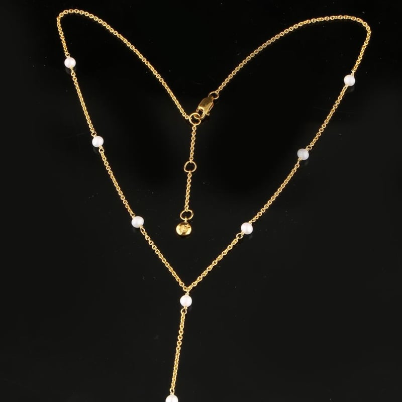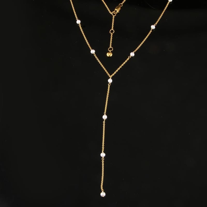 Elegance in Every Drop: Full Drill Pearl NecklaceIndulge in the timeless allure of this exquisite necklace, featuring ten lustrous full drill pearls, each measuring a perfect 3.50mm. The pearls are expertly strung along a delicate chain that cascades gracefully, adorned with three stunning drop chains of 3cm each, creating an enchanting play of movement and light. This piece captures the essence of sophistication, where classic elegance meets modern design. The iridescent glow of the pearls adds a touch of opulence, making it the perfect accessory for both everyday wear and special occasions. Whether paired with a little black dress or a crisp white blouse, this necklace is destined to be a cherished addition to any jewelry collection. Elevate your style and embrace the beauty of pearls with this luxurious necklace, a true statement of refinement and grace.