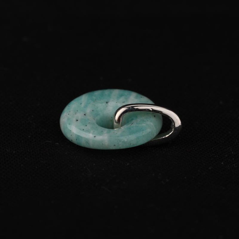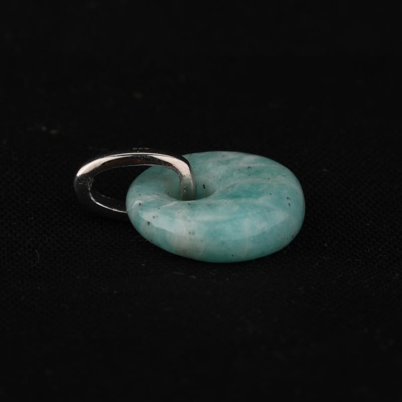 Amazonite Fancy Donut Shape 12.00mm - 1Pc PendantIndulge in the serene beauty of this exquisite Amazonite pendant, shaped into a captivating 12.00mm fancy donut that evokes tranquility and elegance. The gentle, soothing hues of this natural gemstone range from soft blues to vibrant greens, reminiscent of lush tropical waters and serene landscapes. Crafted to perfection, this one-of-a-kind piece showcases the stone’s unique banding and natural inclusions, making each pendant truly exceptional. Suspended gracefully, it invites admiration from every angle, making it a versatile addition to any jewelry collection. Whether worn as a statement piece or layered with other treasures, this Amazonite pendant promises to elevate your style with its calming energy and sophisticated charm. Don’t miss your chance to own this stunning piece of nature’s artistry – it’s more than jewelry; it’s a treasure to cherish for generations.