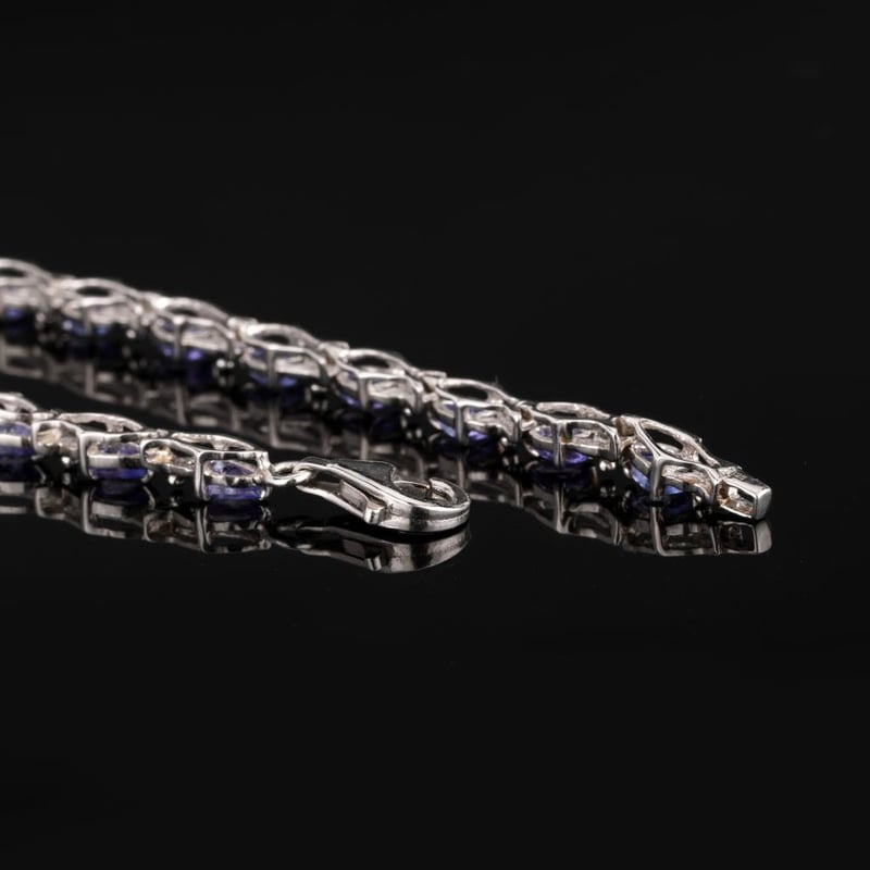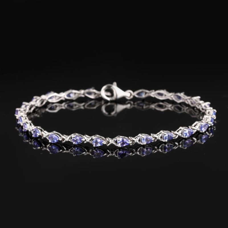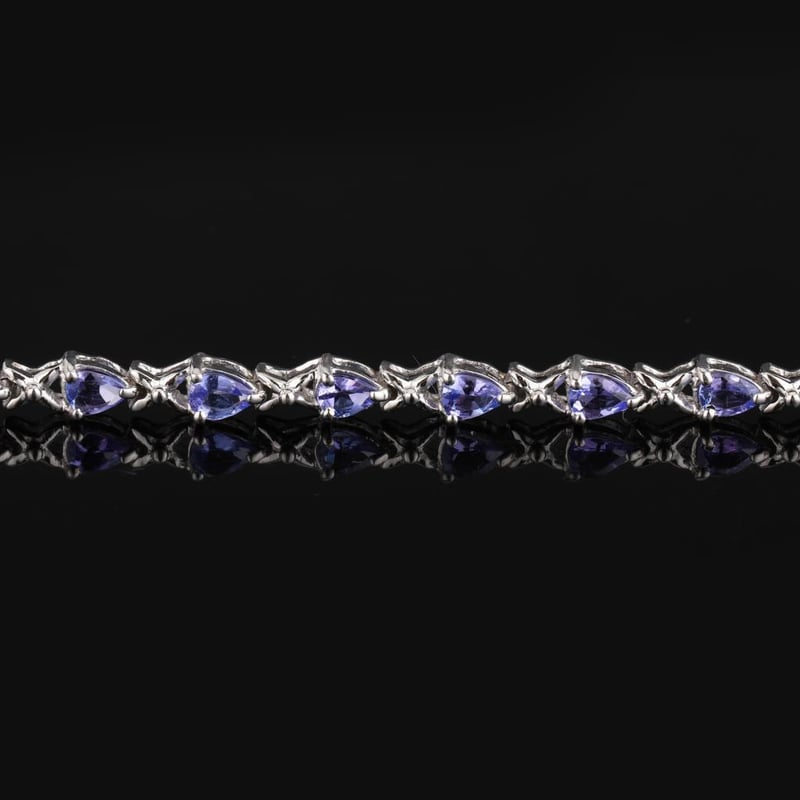 Exquisite Tanzanite Pears Bracelet - 24 Stunning 4x3mm GemsIndulge in the enchanting allure of our exquisite Tanzanite Pears Bracelet, a breathtaking piece that transcends time and trends. This stunning bracelet features 24 meticulously crafted tanzanite gemstones, each measuring an elegant 4x3mm and exhibiting a mesmerizing A-A+ grade. The vibrant hues of deep violet and electric blue dance in harmony, capturing the light with every movement and evoking the mystique of the Tanzanian night sky.Set in a delicate yet sturdy arrangement, the pear-shaped gemstones are artfully linked together, creating a fluid silhouette that gracefully adorns the wrist. This bracelet not only serves as a statement piece but also embodies the spirit of sophistication and refinement, making it the perfect accessory for both casual outings and elegant soirées.Whether you are treating yourself or seeking a luxurious gift for a loved one, this Tanzanite Pears Bracelet promises to be a cherished addition to any jewelry collection. Embrace the opulence of nature's finest gems and let your inner radiance shine through with every wear. Don't miss your chance to own this exquisite treasure—bid now and elevate your jewelry collection to new heights!