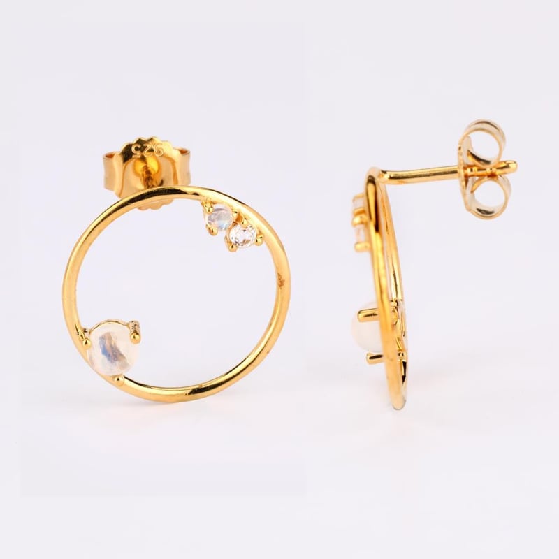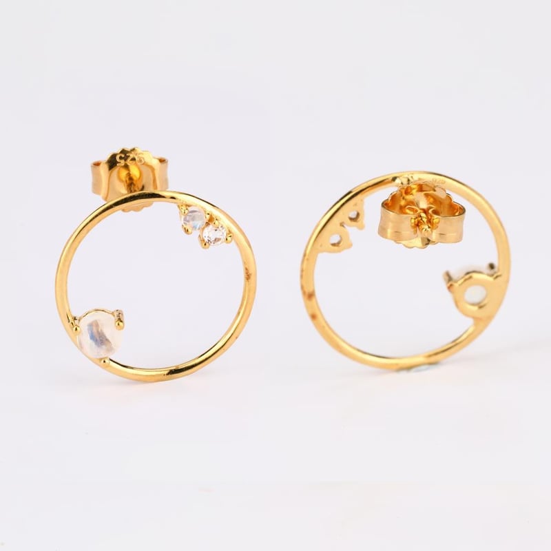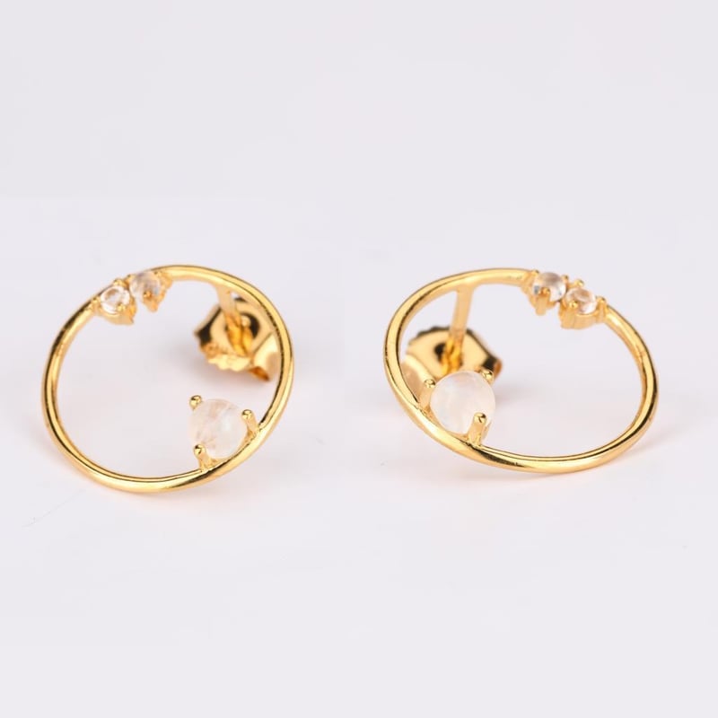 Ethereal Elegance: White Rainbow Moonstone & Topaz Earrings SetStep into a realm of celestial beauty with this exquisite earrings set, featuring a harmonious blend of White Rainbow Moonstone and sparkling White Topaz. The pièce de résistance is the mesmerizing 4.00mm round White Rainbow Moonstone, renowned for its enchanting play of colors that shift with every movement, evoking the soft glow of moonlight dancing on water. Accompanying this stunning centerpiece are two delicate 2.00mm round White Rainbow Moonstones, each radiating a subtle iridescence that adds depth and dimension to the design. Complementing the ethereal moonstones, a radiant 2.50mm round White Topaz captures and reflects light, creating a dazzling display that enhances the earrings' overall brilliance. Crafted with meticulous attention to detail, this set embodies sophistication and grace, making it the perfect accessory for any occasion—from elegant soirées to intimate gatherings. Indulge in the luxurious allure of these earrings, where nature's artistry meets timeless elegance, and let your inner radiance shine through.