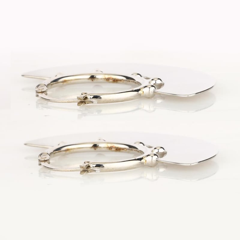 Elegant Simplicity: Plain Metal EarringsIntroducing a timeless pair of Plain Metal Earrings, embodying the essence of understated elegance. Crafted from high-quality, polished metal, these earrings exude a sleek and modern aesthetic that complements any outfit, from casual daywear to sophisticated evening attire. Their minimalist design allows for versatility, making them a staple accessory in any jewelry collection.Measuring just the right size, these earrings delicately frame the face while catching the light with every movement. Whether worn alone for a chic, refined look or layered with other statement pieces for a more eclectic style, these earrings are the perfect fusion of simplicity and sophistication. Embrace the art of subtlety with this exquisite pair, destined to enhance your jewelry wardrobe for years to come. Don’t miss the opportunity to own a piece that embodies the beauty of minimalism at this exclusive auction.