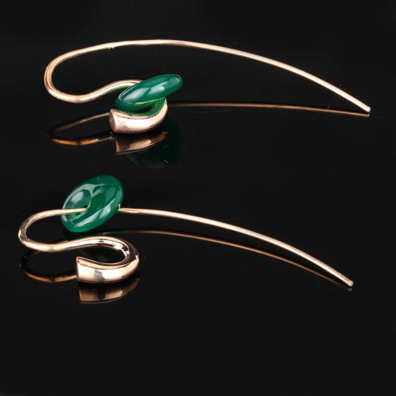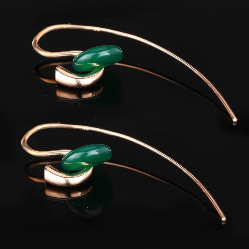 Elegant Green Onyx Drop EarringsIndulge in the captivating allure of these exquisite Green Onyx drop earrings, designed to elevate any ensemble with a touch of sophistication. Each earring features a stunningly polished, teardrop-shaped green onyx stone, known for its deep, vibrant hue that evokes the tranquility of lush landscapes and the serenity of nature.Crafted with meticulous attention to detail, these earrings are set in high-quality sterling silver, enhancing their luxurious appeal while providing a striking contrast to the rich green tones of the onyx. The graceful drop design allows them to sway elegantly with every movement, catching the light and creating a mesmerizing effect that’s perfect for both day and evening wear.Whether you're dressing up for a gala or adding a touch of glamour to your everyday look, these Green Onyx earrings are the ultimate statement piece. Treat yourself or surprise a loved one with these timeless treasures that embody elegance and style. Don’t miss the opportunity to own this unique pair that is sure to become a cherished addition to your jewelry collection.