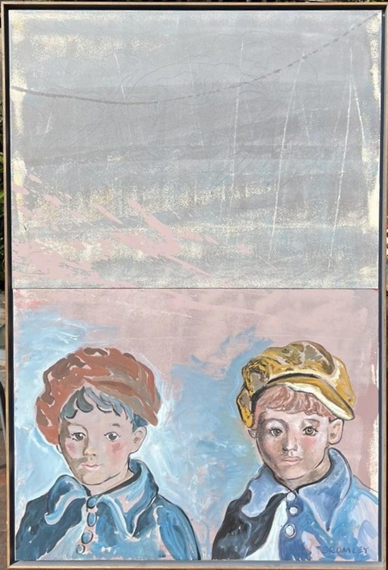 The Upper Canvas Is An Abstract Work And The Lower Is The Painting That Describes The Two Boys