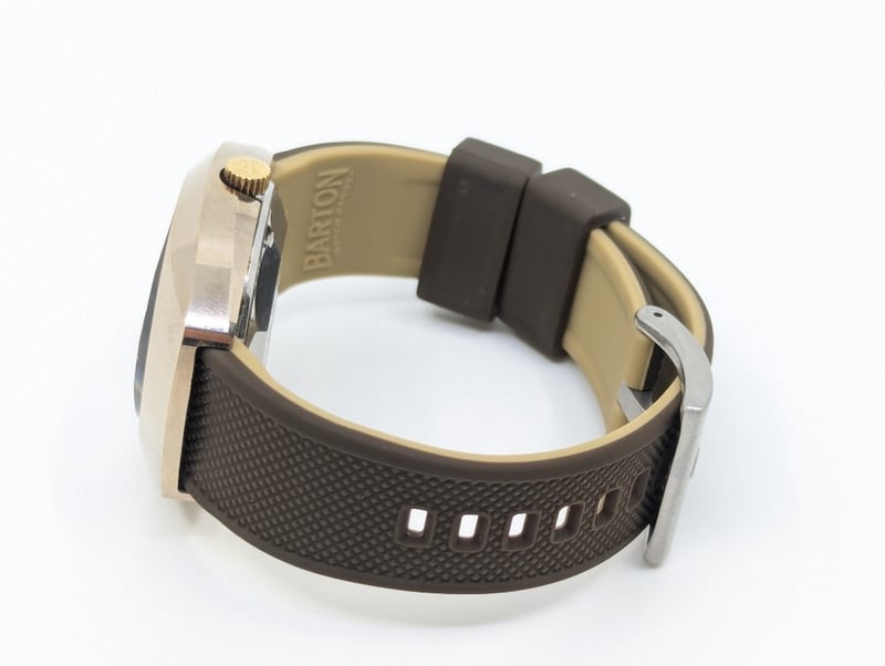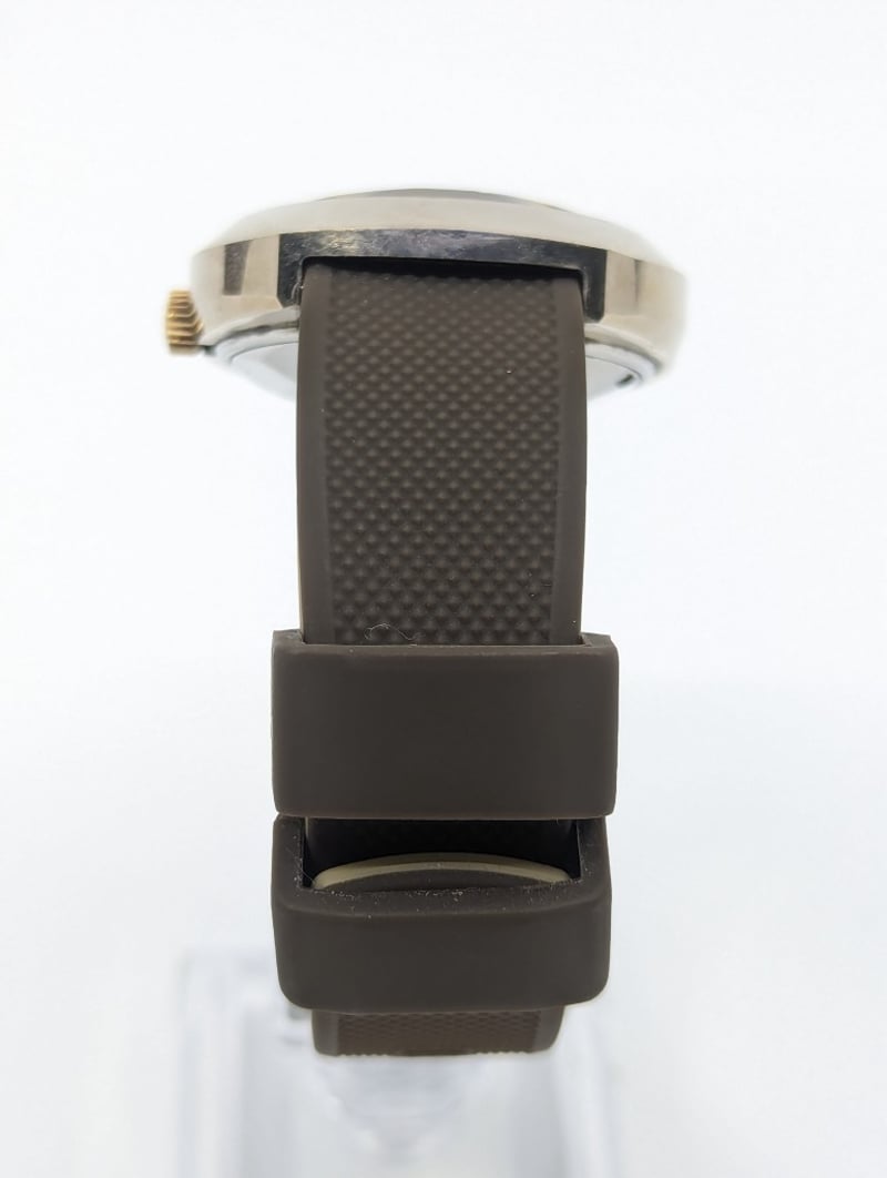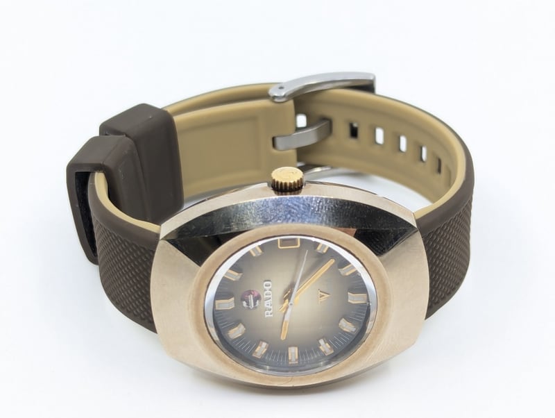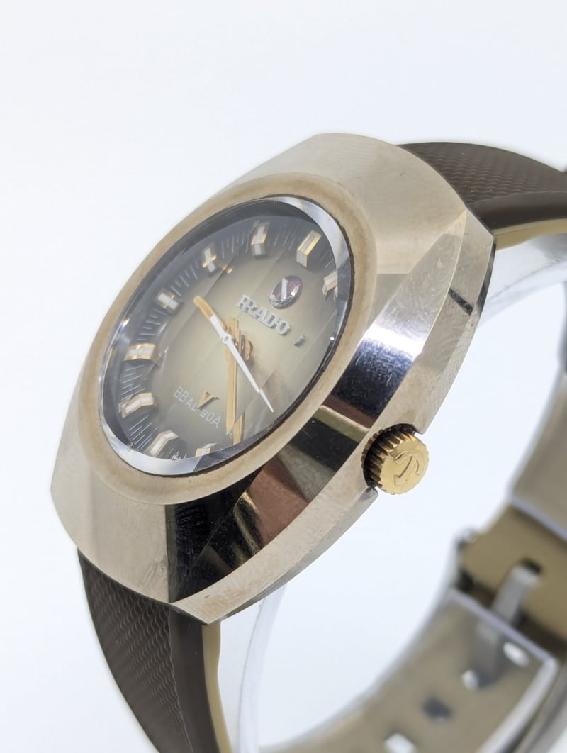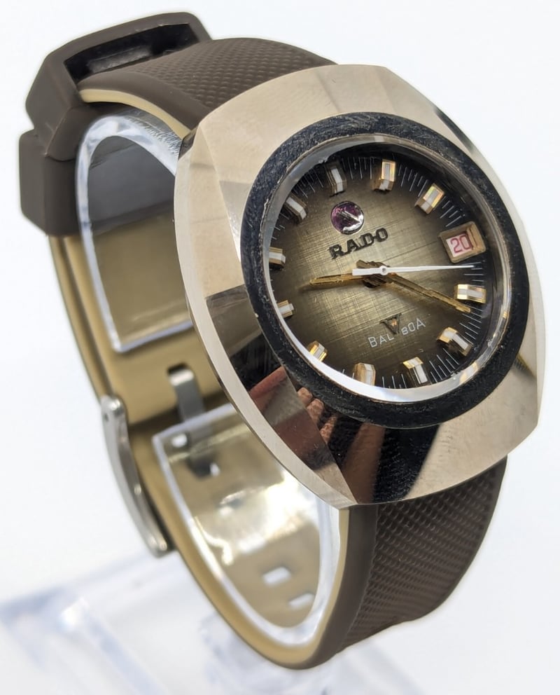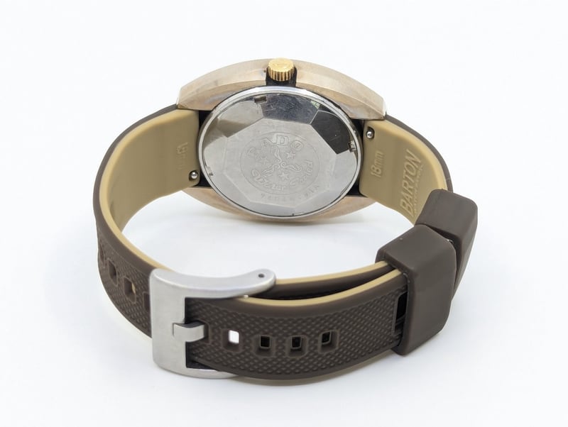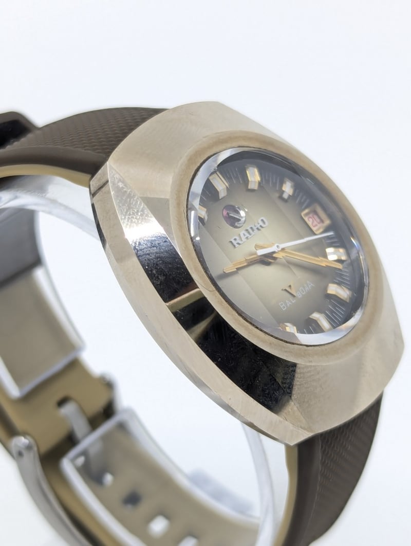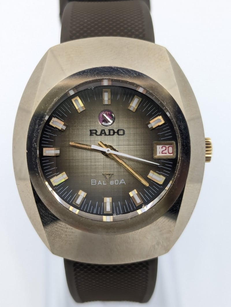 RADO BALBOA DIAL: BRONZE COLOUR DIALCASE DESCRIPTION: STAINLESS STEEL / TUNGSTENCASE SIZE: 36MMBRACELET: RUBBER BRACELETMOVEMENT: AUTOMATICBOX: NOT INCLUDEDPAPERS: NOT INCLUDEDCondition: Good - Refer To ImagesAdditional Information: Non Numerical Hour MarkersDate Display At 3 O'Clock PositionBuckle Clasp586301+8
