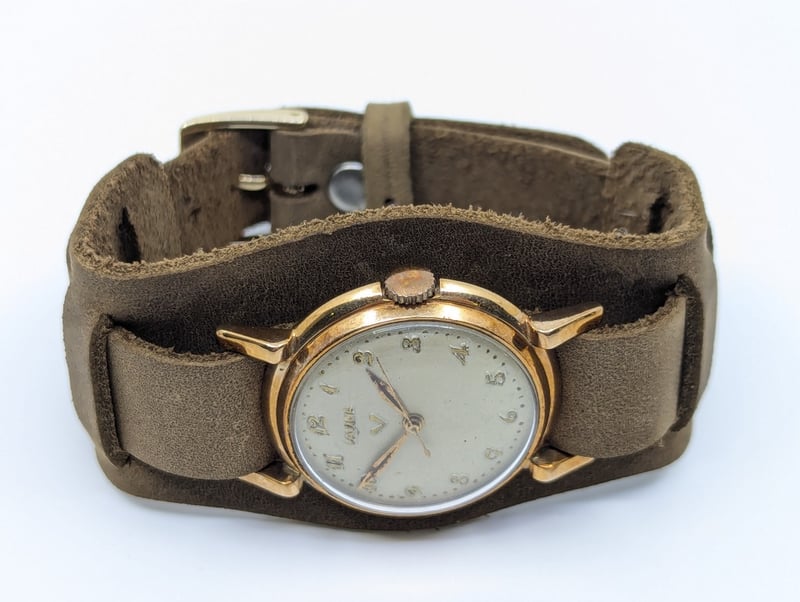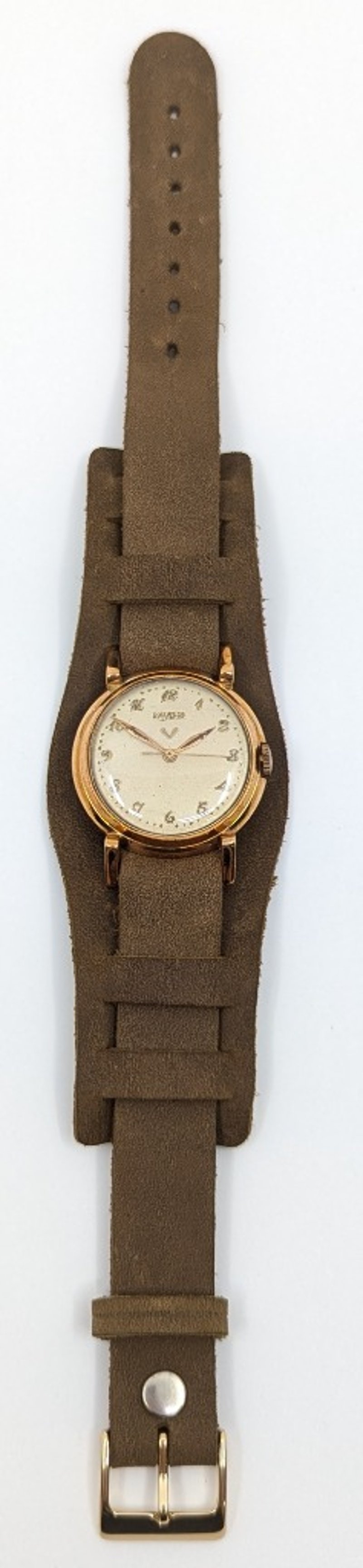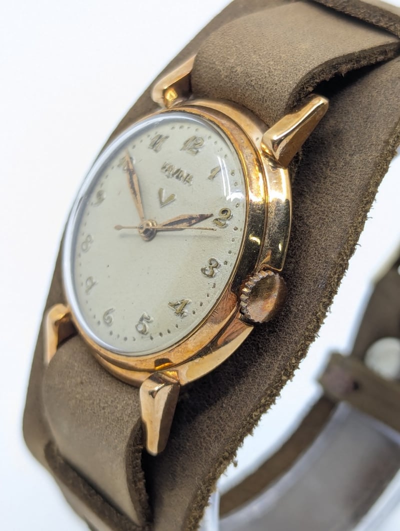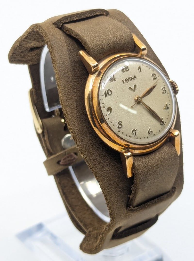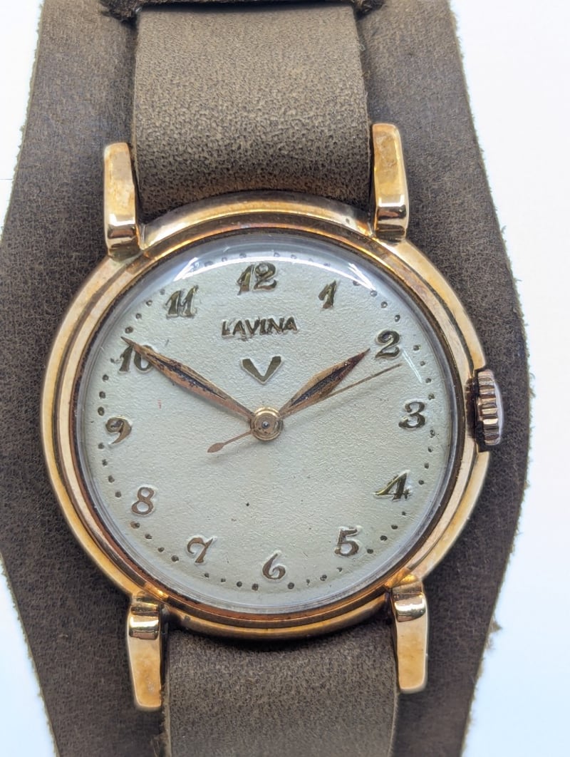 LAVINA DIAL: CREAM DIALCASE DESCRIPTION: YELLOW GOLDCASE SIZE: 31.6MMBRACELET: LEATHER STYLEMOVEMENT: MANUALBOX: NOT INCLUDEDPAPERS: NOT INCLUDEDCondition: Good - Refer To ImagesAdditional Information: Arabic Numeral Hour MarkersBuckle ClaspMovement Untested586301+10