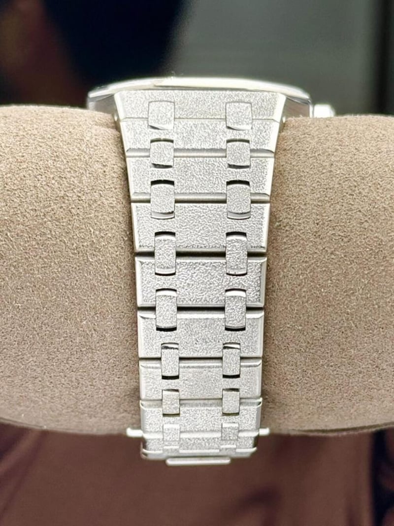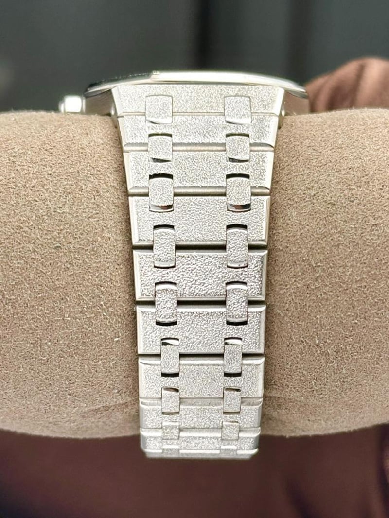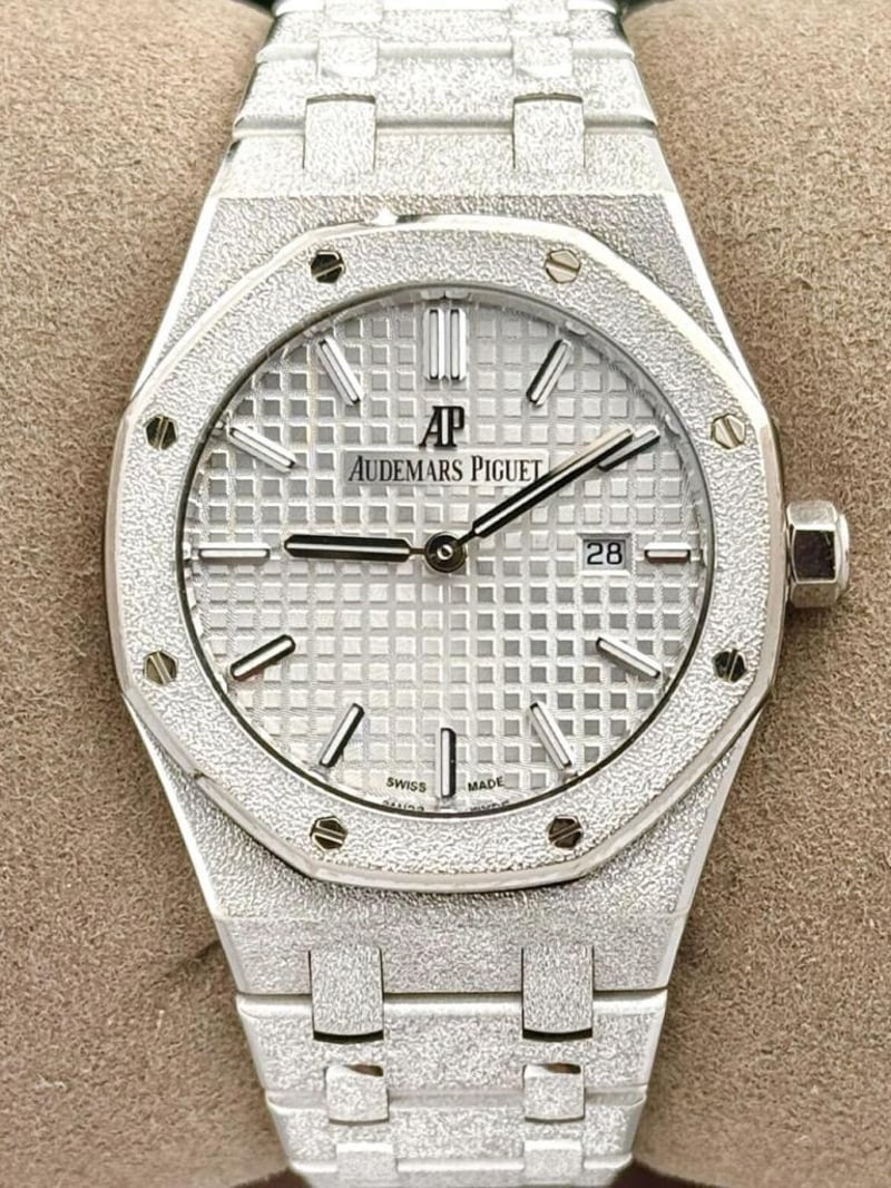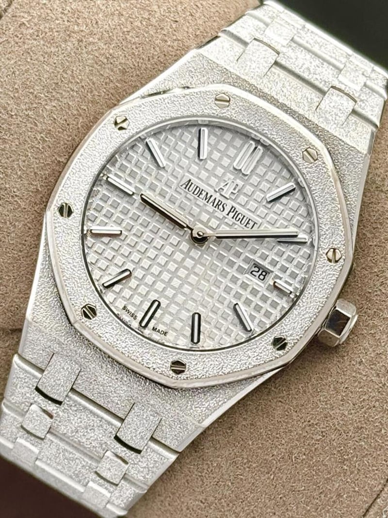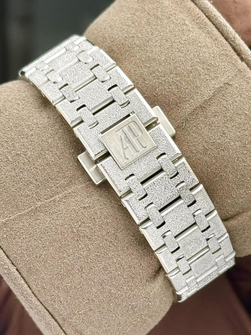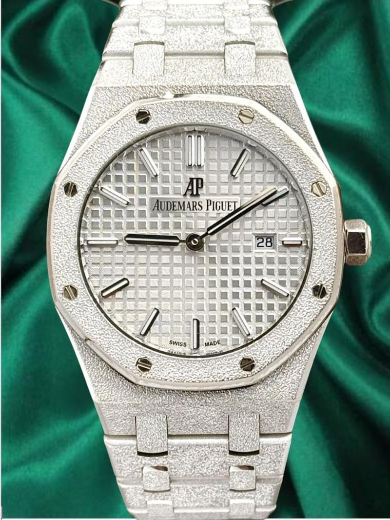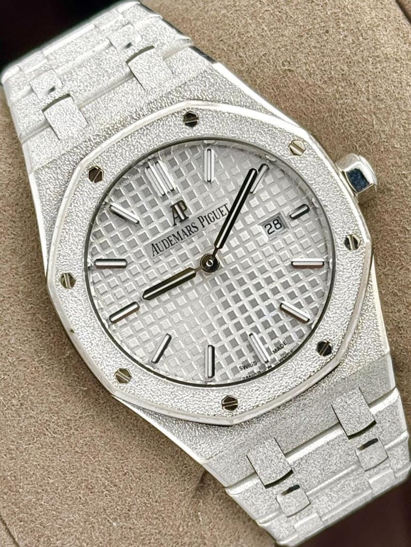 AUDEMARS PIGUET ROYAL OAK LADY FROSTED 67653BC | 2020 | 33MM Price Guide - $107,000 - Circa Brand : Audemars Piguet Reference : 67653Bc Model : Royal Oak Lady Year : 2020 Condition : Mint Case Size : 33Mm Dial : Silver Bezel : White Gold Case : White Gold Bracelet : White Gold Papers : Yes Box : Yes Condition: Good - Refer Images 0 488240+31