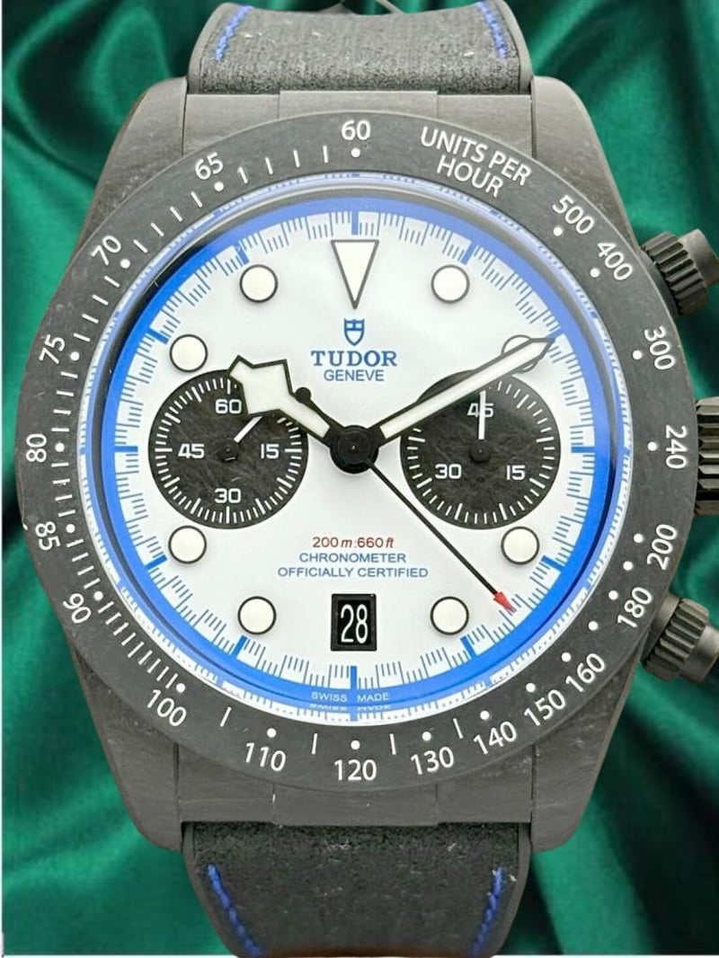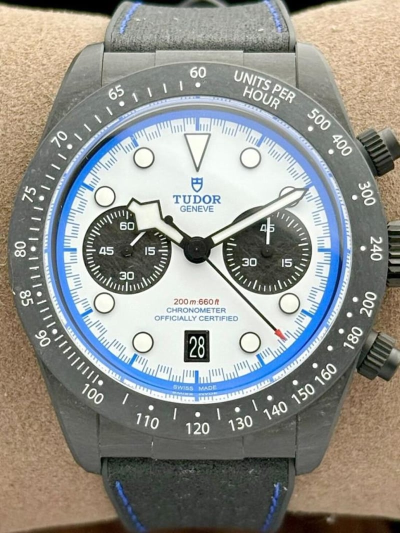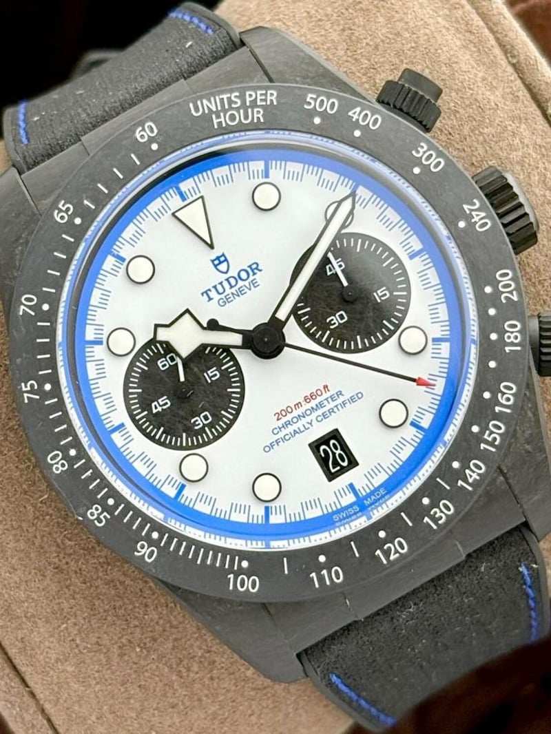 TUDOR BLACK BAY CHRONO RACING WHITE CARBON FIBER SPECIAL & LIMITED EDITION M79377KN-0001 | 2025 | 42MM Price Guide - $14,000 - $23,000 Brand : Tudor Reference : M79377Kn-0001 Model : Black Bay Chrono Year : 2025 Case Size : 42Mm Power Reserve : 70H Dial : White Bezel : Carbon Case : Carbon Bracelet : Rubber Papers : Yes Box : Yes Condition: Good - Refer Images 0 488240+3