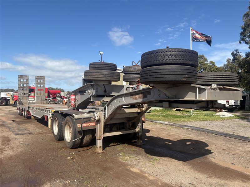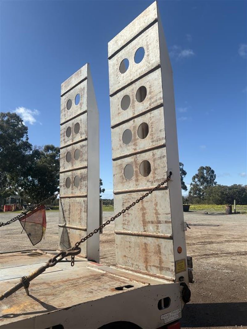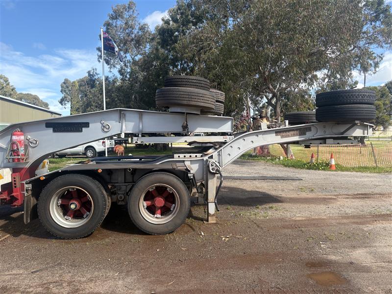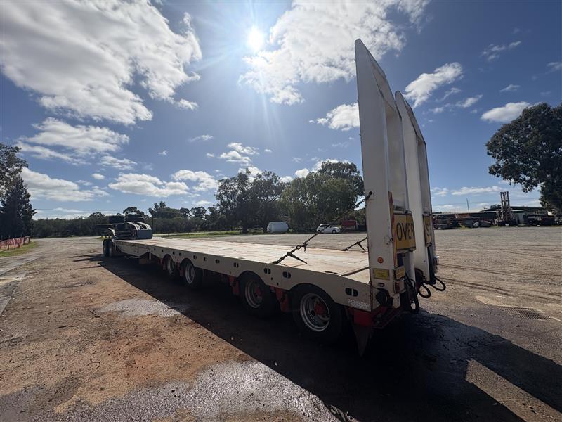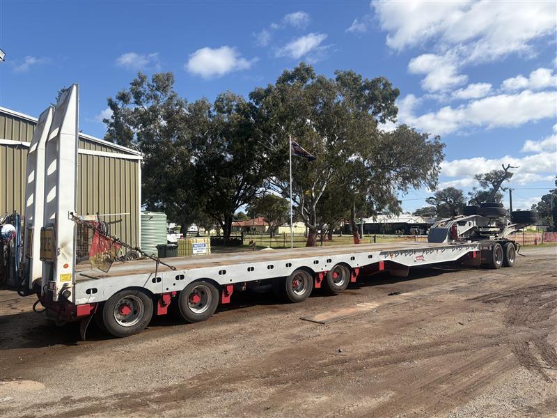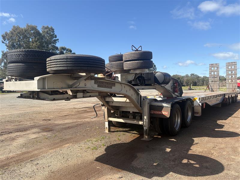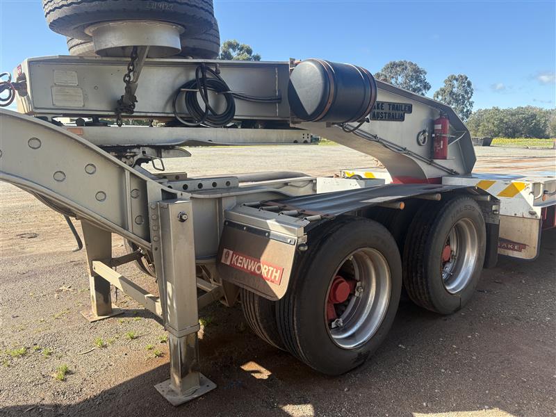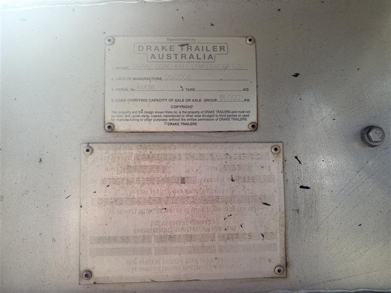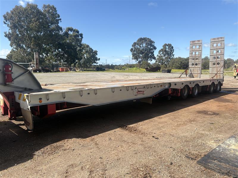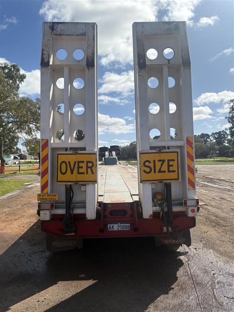 2008 Drake Low Loader Trailer with 2010 Paul Elsden Dolly Year: 2010 Make: Paul Elsden Transport Equipment Pty Ltd Model: Quad Axle Low Loader Gooseneck / Dolly Front Section Body: Detachable Gooseneck Front Colour: White with Red Chassis Configuration: Tandem Axle Front Section Suspension: Airbag Description: Paul Elsden 2010 detachable low loader gooseneck front section, tandem axle configuration. Includes mounted spare tyres. Designed for use with quad axle low loader trailers. Chassis No.: 6T9T23WA1A08L1003 ATM: 80,000 kg Year: 2008 Make: Drake Trailer Australia Model: Quad Axle Low Loader Body: Low Loader Trailer with Hydraulic Ramps Colour: White with Red Chassis Configuration: Quad Axle Suspension: Airbag Description : Will come with one spare tire only. Chassis No.: 6T9T25ABF80AKG037 ATM: 54,000 kg Load Carrying Capacity of Axle/Group: 36,000 kg Total length: approx. 14–15 m Key #: OFFSITE