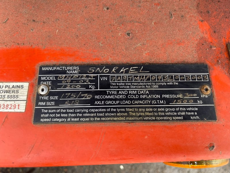 2003 Snorkel Lift 12m Year: 2003Make: Snorkel LiftModel: Snorkel 12m MHP125Hours Indicated: 1844hrsEngine: GX160 Honda 5.5VIN: 7A9TMHP093L003003KetDescription: inspection advised.