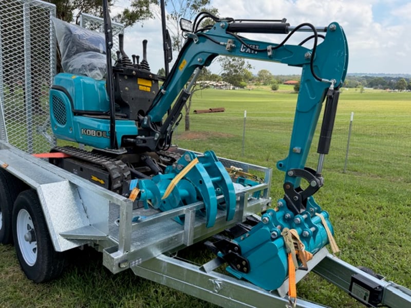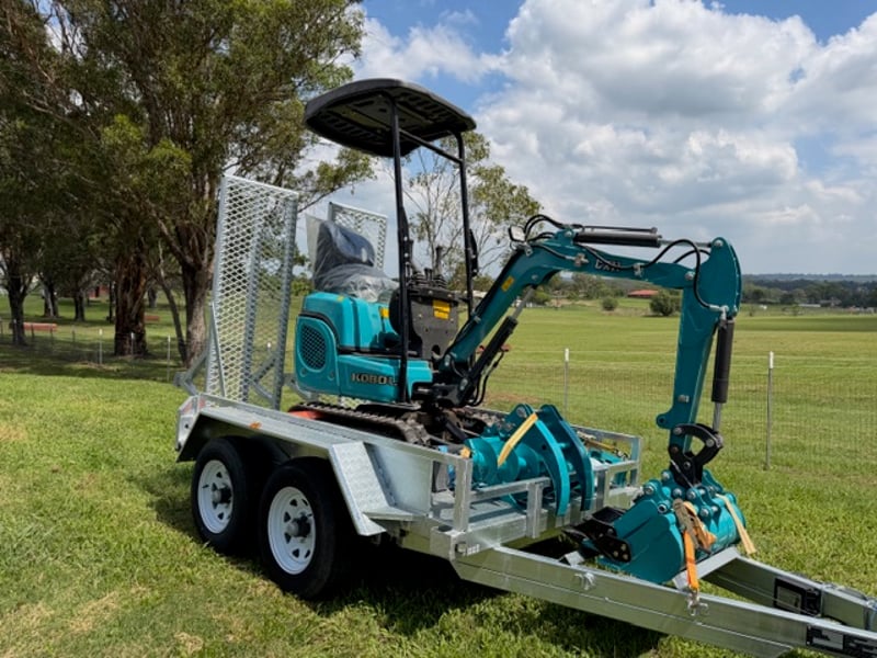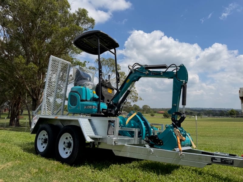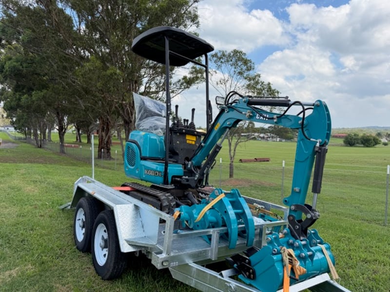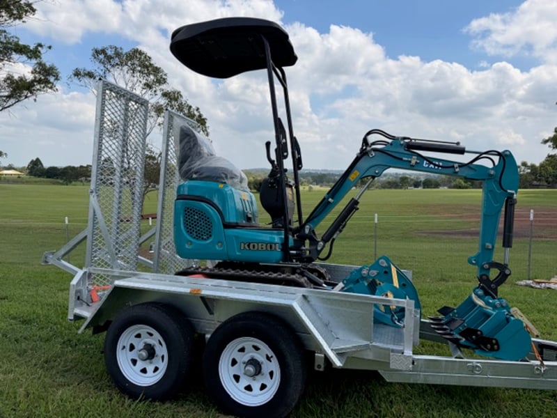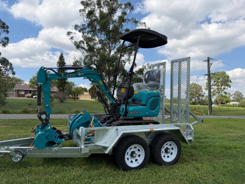 KOBOLT KX11 Excavator (Multiple attachments included) w/ 8X5 3T Heavy Duty Digger Trailer