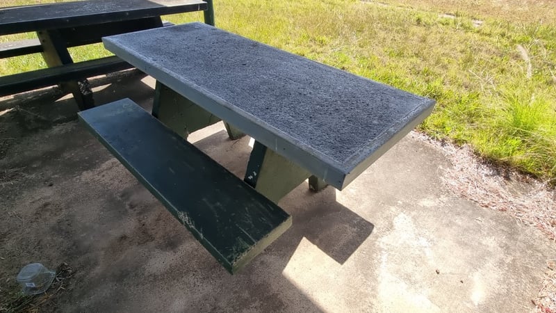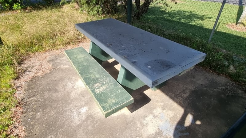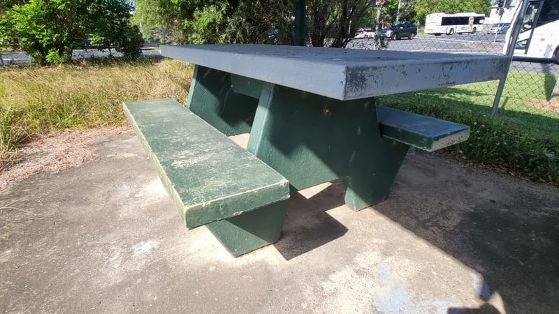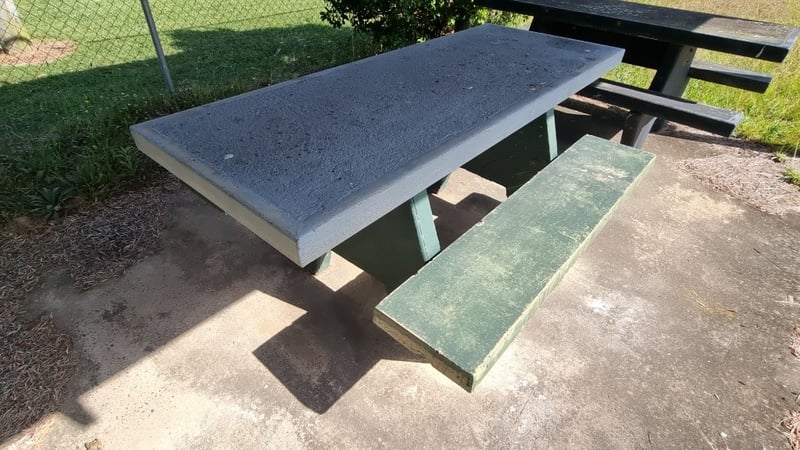 Concrete park Bench With Metal Edging Grey Top with Green Seats and Legs